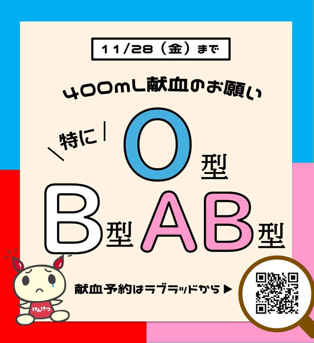 / 📣400mL献血(全血献血)のお願い \ 東海北陸ブロックでは現在 #O型#B型#AB型 の皆様のお力が必要な状況です。 ぜひお近くの献血ルームでご協力をお願いいたします!! 職員一同お待ちしております🍁 🔎#献血 会場やキャンペーン情報は各赤十字血液センターのSNSやHPチェック✅ #日本赤十字社 pic.x.com/edG2uhdS0N