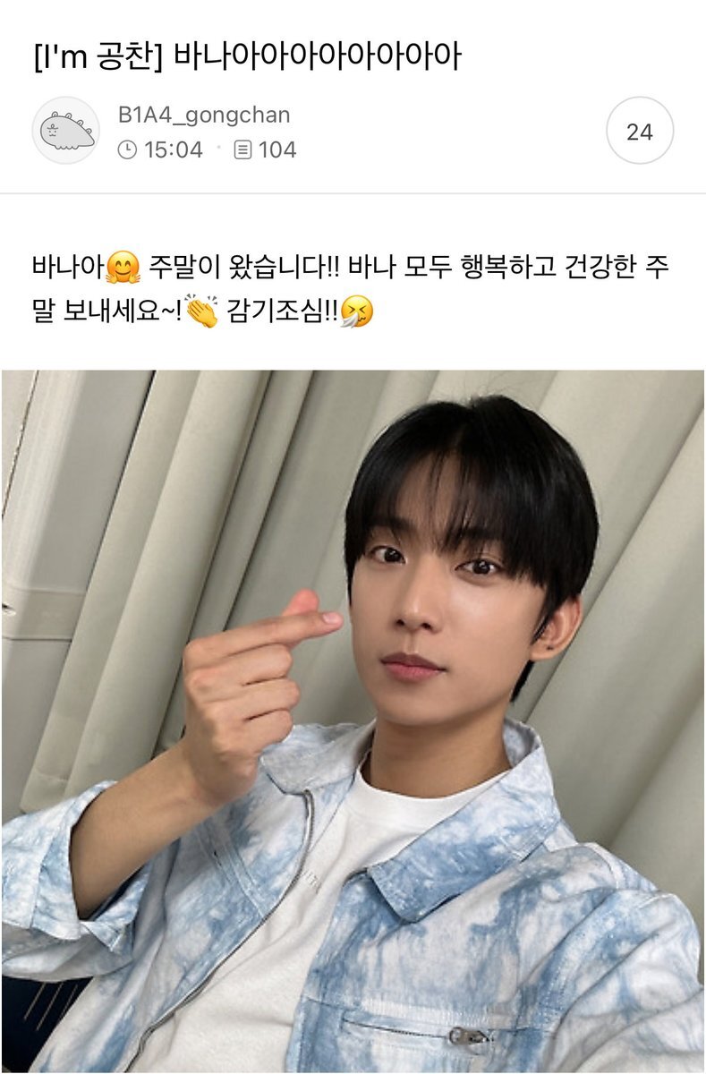 月曜日ゴンチャン来た❤️ ペンミの準備で忙しいのに、BANAに会いに来てくれてありがとう😆🩷 月曜日が始まったねぇ✨ 季節の変わり目でBANAの体調を気にしてくれる優しいBANAのかれぴ🥰 今週も화이팅だよぉぉ👍 #공찬 #gongchan @B1A4_gongchan #B1A4 pic.x.com/8oMi6vQ0Mp