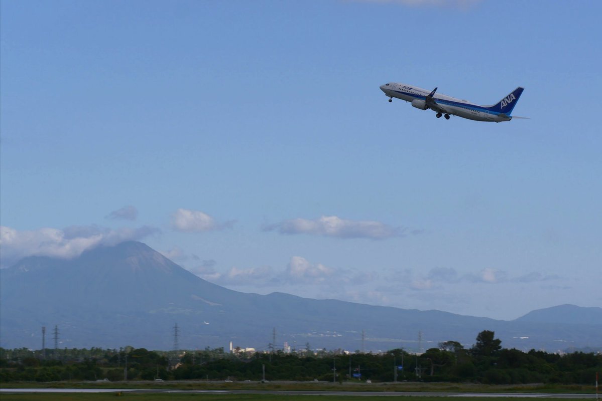 米子鬼太郎空港✈️より 展望デッキ ⛅ ANAのB737が離陸しました 流し撮りチャレンジ(目立たない🤭) つい大山を入れたくなります 昨日初冠雪🏔️でしたね #米子空港 #ANA #B737 pic.x.com/GGIR2Fe7t3