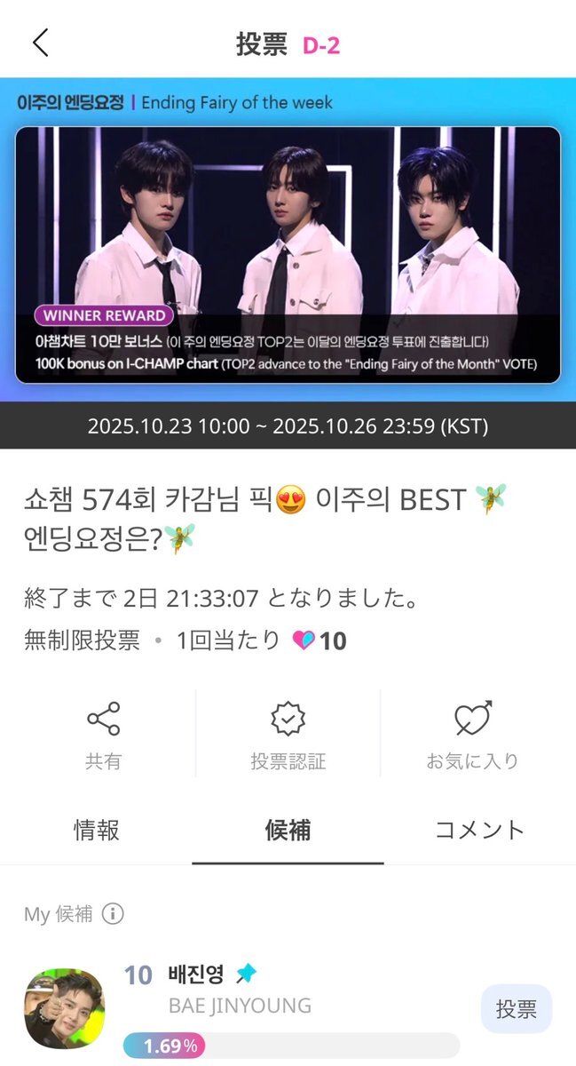📍THE SHOW Ending Fairy of the Week 投票のご案内 IDOL CHAMPにて投票可能 2025.10.26 23:59まで 投票と沢山の関心よろしくお願いします🧸 #배진영 #ペジニョン #BAEJINYOUNG #裴珍映 pic.x.com/CMj4jq9zP3