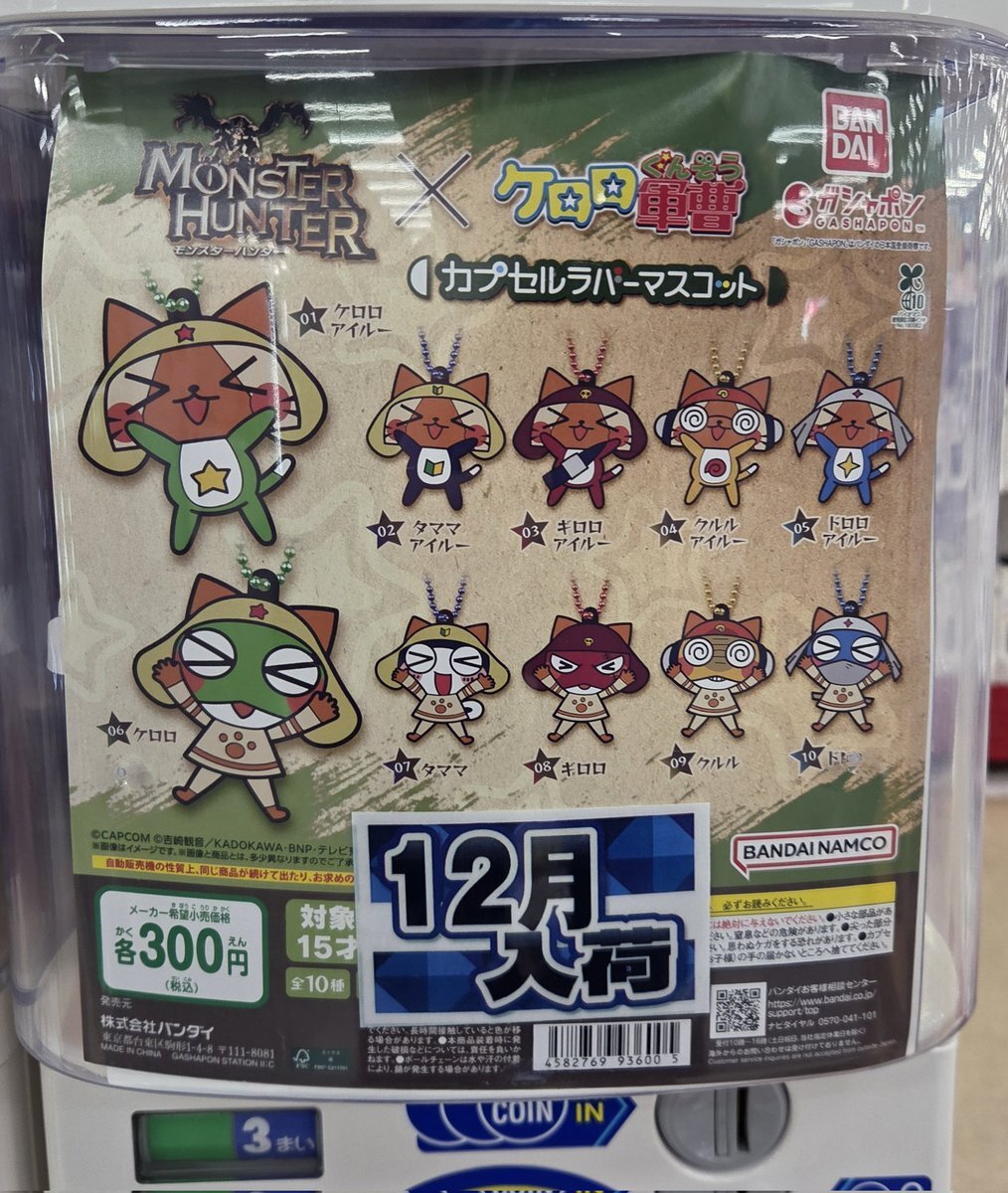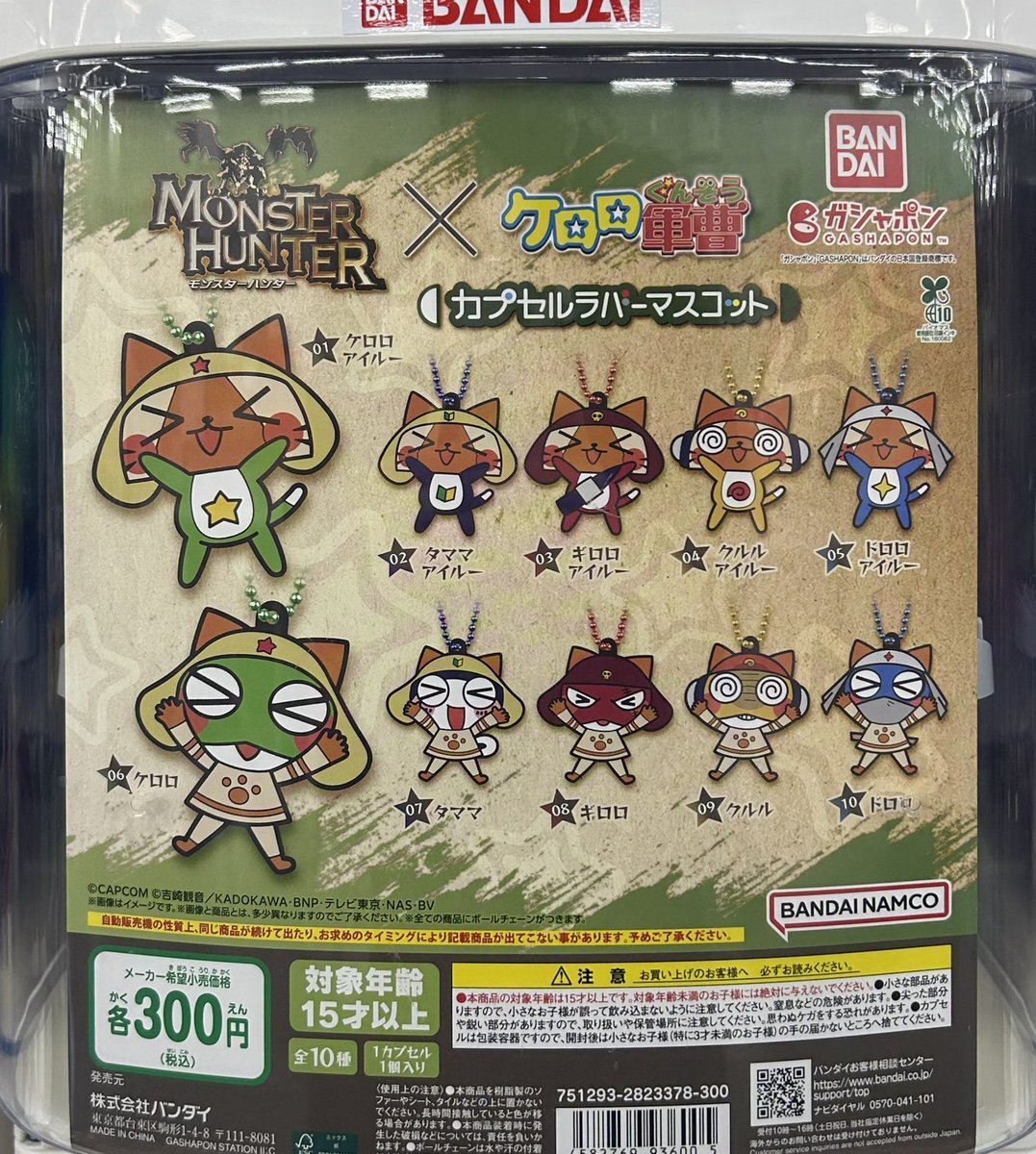 モンスターハンター×ケロロ軍曹 カプセルラバーマスコット 1回300円 入荷いたしました‼️ アイルーとケロロ小隊がコラボした可愛いラバマス✨ 是非回しに来てください🎶 #BANDAI #マンガ倉庫 フォロー待ってます‼️ Tiktok #マンガ倉庫鹿屋店 で検索🔎 pic.x.com/ulKw5VBe0e