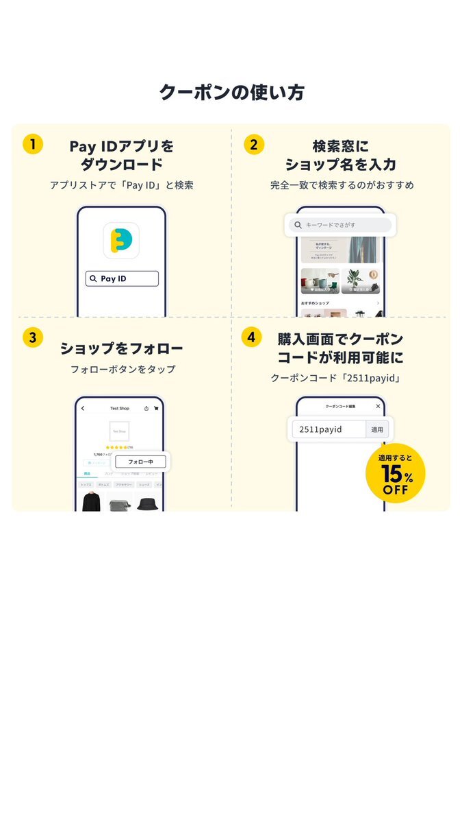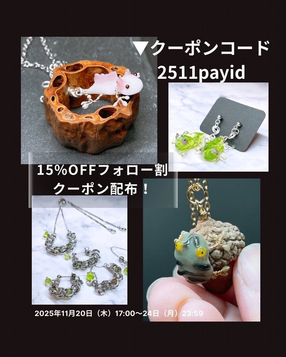 お得な機会にお客さまにGETして欲しい! 新作だって割引きになります☆ 【Pay IDアプリ限定】15%offフォロー割クーポン(上限1000円) ▼クーポンコード 2511payid ▼キャンペーン期間 2025年11月20日(木)17:00〜24日(月)23:59 #PayIDブラックフライデー #BASE #オンラインショップ pic.x.com/diwILP3WWj