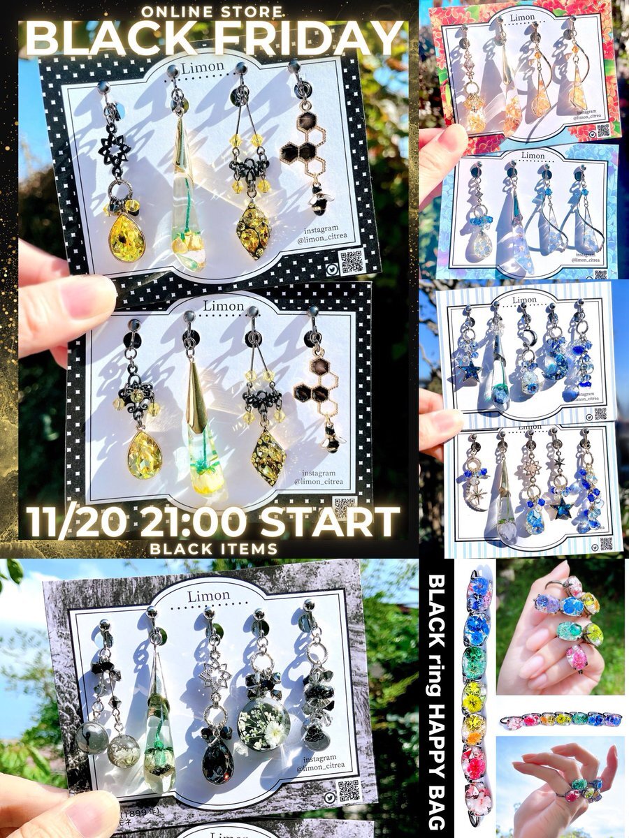 ◆BLACK FRIDAY◆ 11/20(木)21:00-25(火)06:59 通販▶︎ limon.official.ec ◀︎ 1年ぶりBLACK耳飾り、女王蜂イメージとリング福袋🐝その他リクエストのあった作品の受注を通販にて販売開始。 #PayIDブラックフライデー #BASE pic.x.com/ybiB0x2yhM