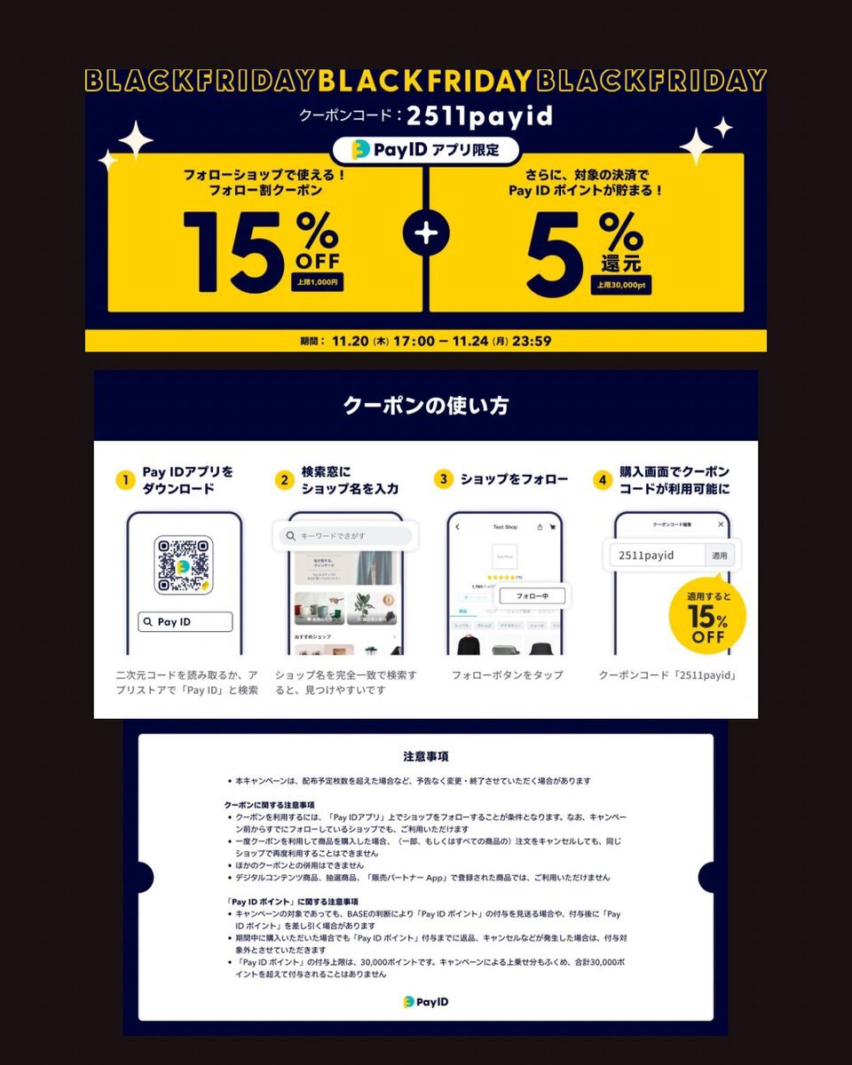 BASEのブラックフライデー スタートしてます😃☝️💖 #PayID #BASE x.com/payid_jp/statu…