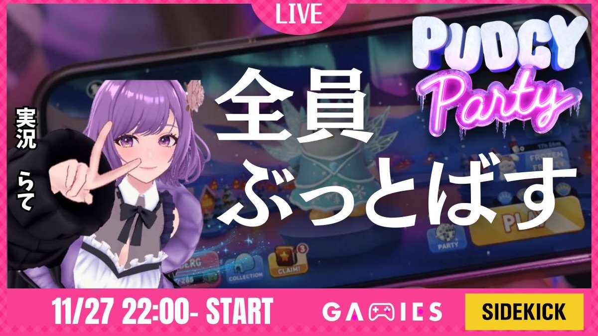 本日22時~の配信は【#GAMIES 公式アカウント】 からSidekickにて配信します🎮 ※今日は不具合なければLuckyBagあるかも…?💰 ゲームは第2回目となる #PudgyParty です🐧❄️ 今回も1位は全部私が頂きます( ˙-˙ ) @GAMIES_Official @PlayPudgyParty #Web3 #BCGame #Bitcoin #Vtuber x.com/GAMIES_Officia…
