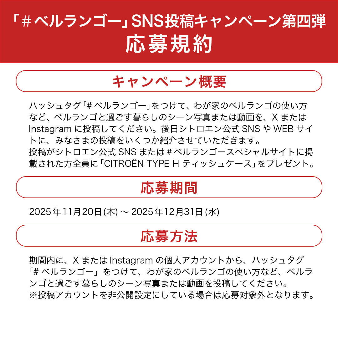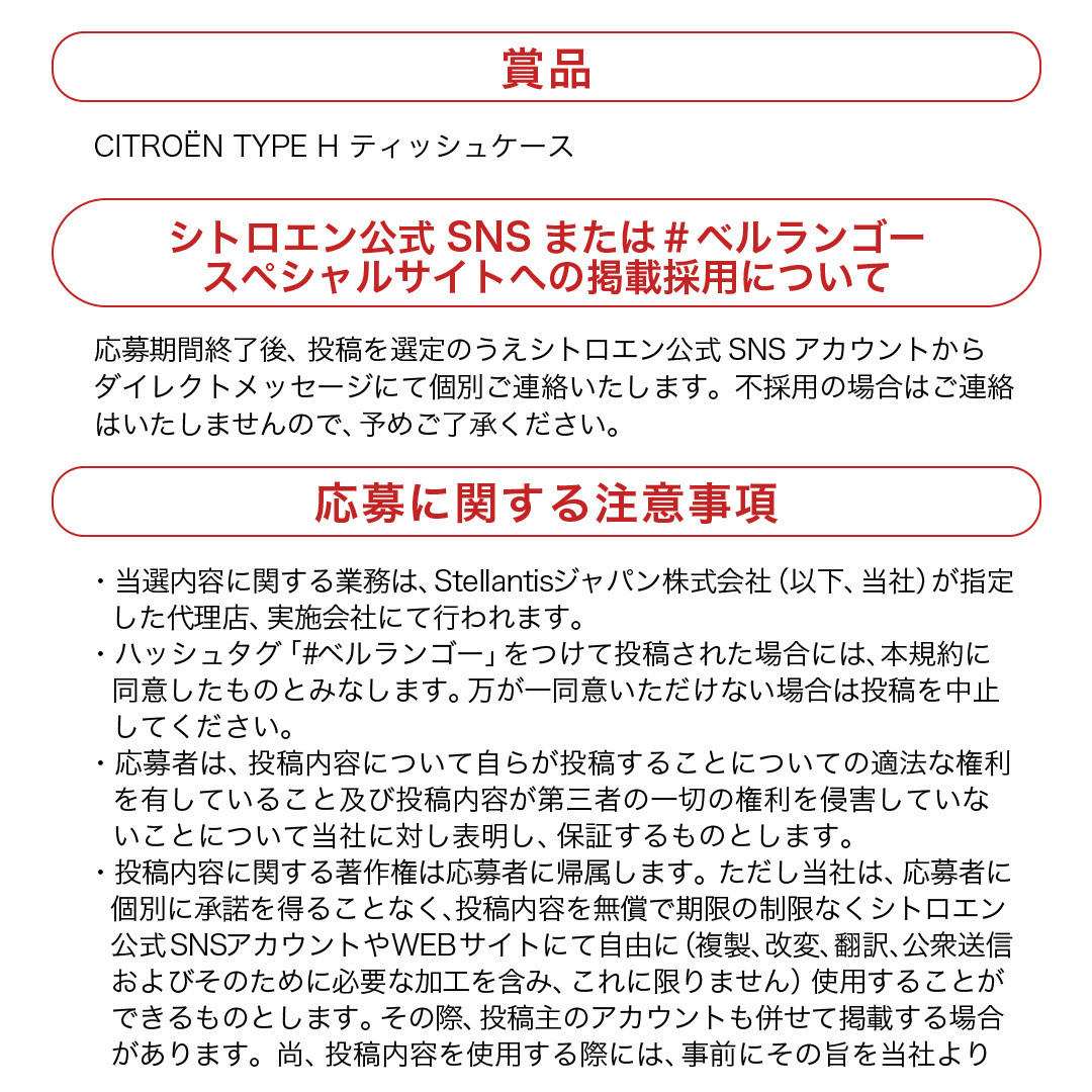 シトロエン公式SNSまたはベルランゴースペシャルサイトで、 掲載された"皆様"に、シトロエンオリジナル TYPE H ティッシュケース をプレゼント🎁 詳細はこちら▼ web.citroen.jp/new-berlingo/#… #シトロエン #citroen #BERLINGO pic.x.com/t2EsbuIomU