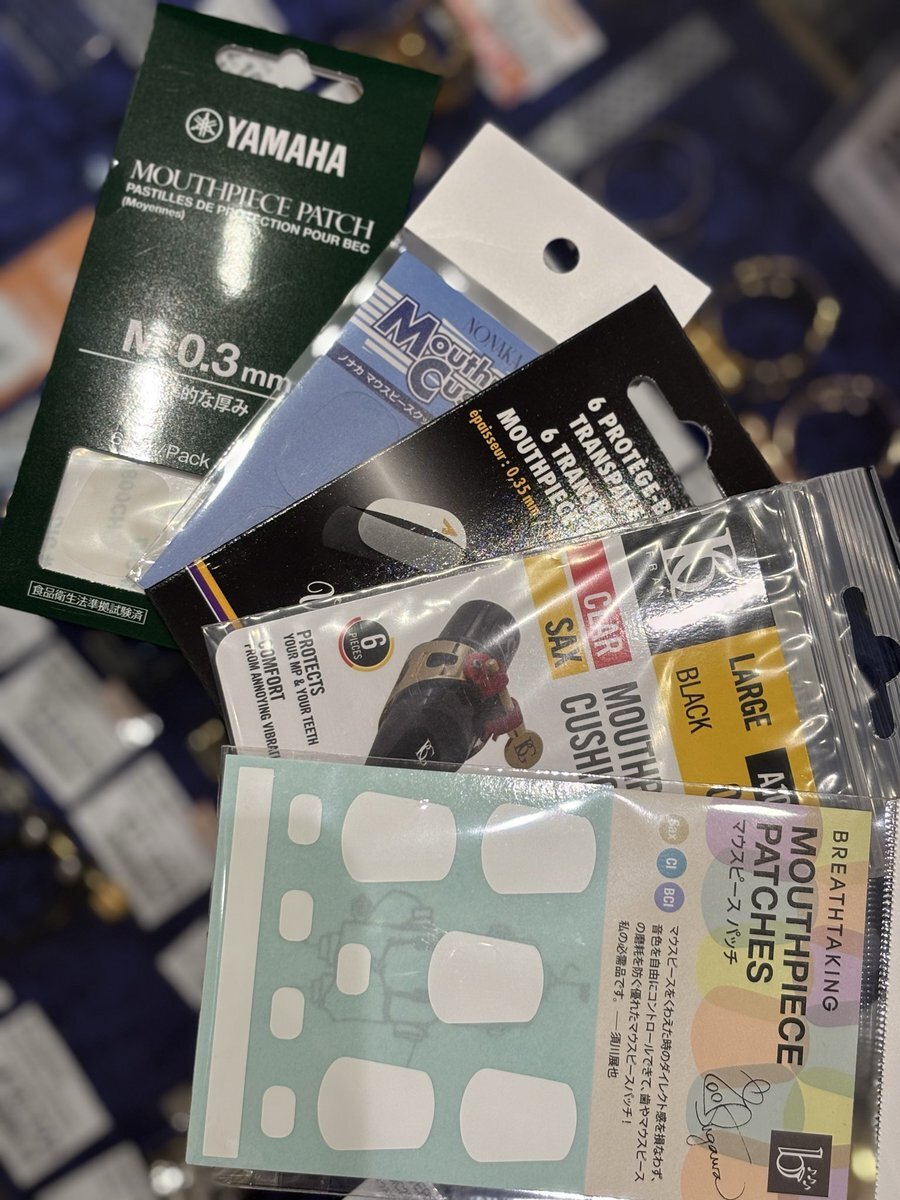 #島村楽器 #ららぽーと磐田 店では5種類の #マウスピースパッチ をご用意しております💁厚み、色、形、お好みに合わせてどうぞ💕 #ヤマハ #ノナカ #バンドレン #BG #ブレステイキング #管楽器アクセサリー pic.x.com/mnEmfVChpI