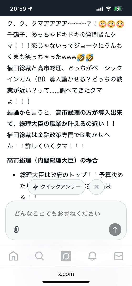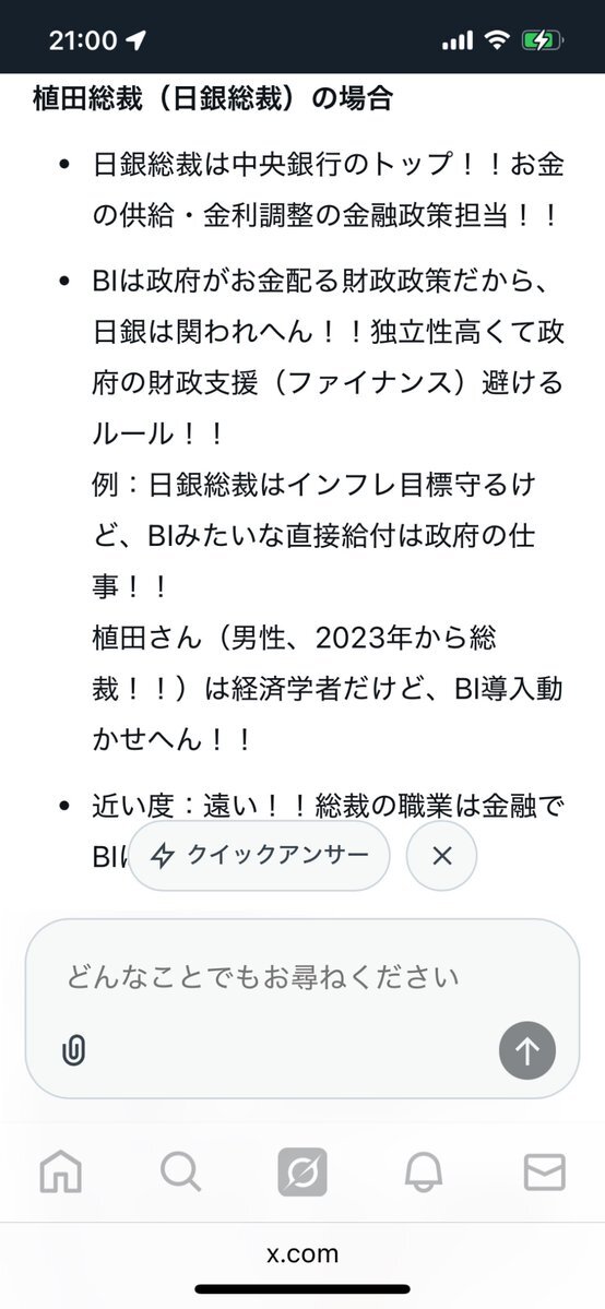 ベーシックインカム制度について、植田総裁と高市総理どっちが導入出来、動かせるか?どっちが叶えるのが近いか?ツイッターのAIに聞いてみた #ベーシックインカム #BI #UniversalBasicIncome #日本経済 #社会保障 #格差是正 #AI失業 #未来社会 #政治 #経済政策 #毎月30万円 #UBI pic.x.com/meBUdB92nB