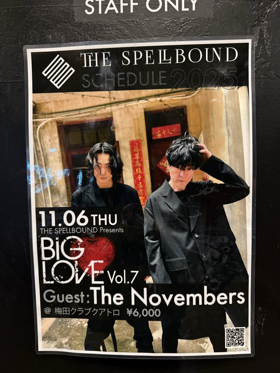 THE SPELLBOUND Presents BIG LOVE Vol.7 UMEDA CLUB QUATTRO 2025.11.6 Guest:THE NOVEMBERS 初めてのノベンバライブ!hareruyaはドラムが力強くて小林さんの歌い方も違った。これがノベンバの音なんだ。 音の厚みや調和がめちゃかっこいいバンドだった! #BIGLOVE #THESPELLBOUND #THENOVEMBERS pic.x.com/hnaaSUKRlz