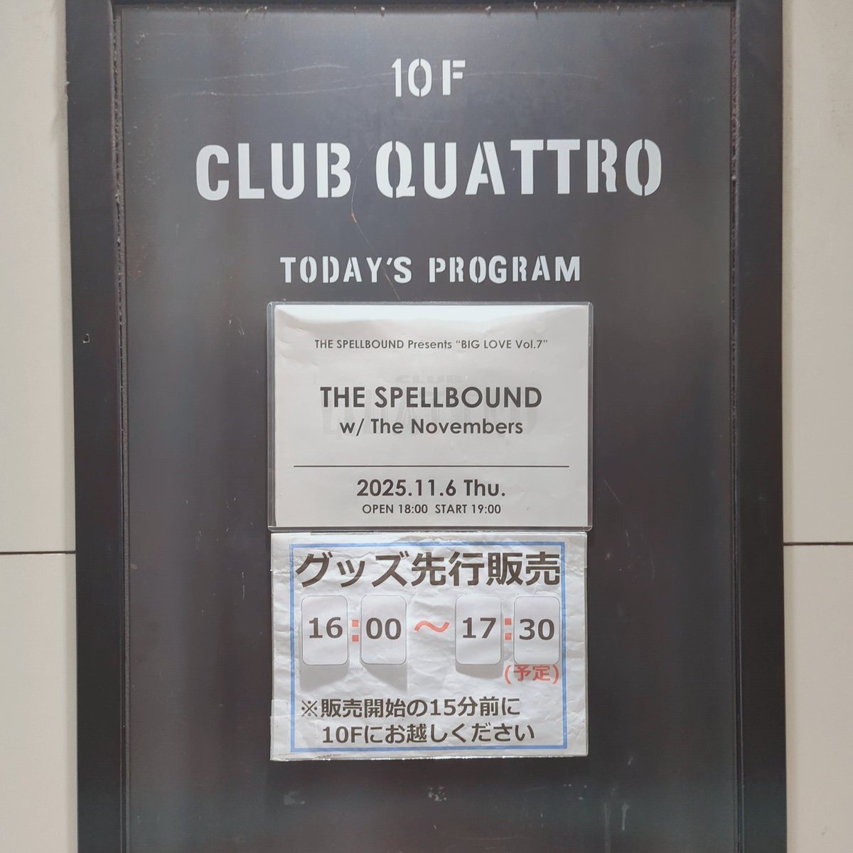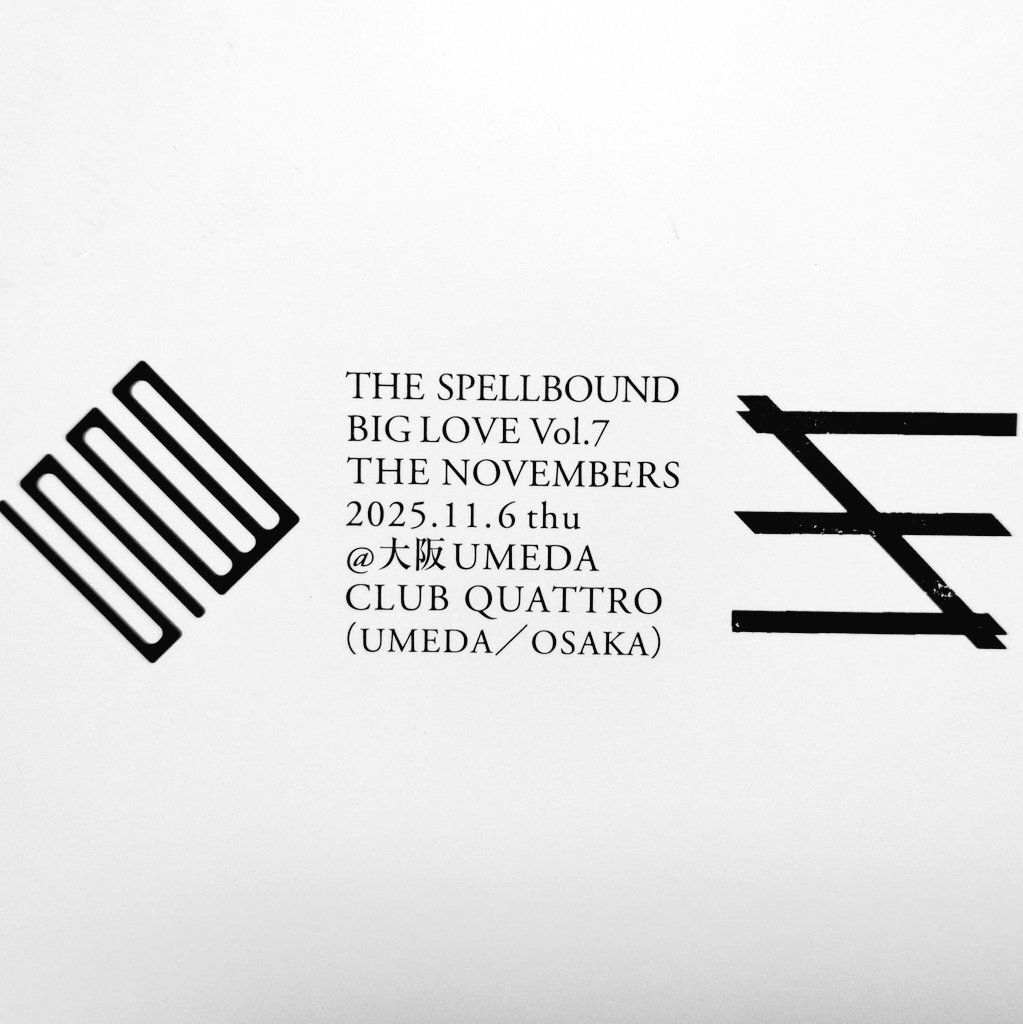 2025.11.06(thu) THE SPELLBOUND presents BIG LOVE Vol.7 @梅田クアトロ w/The Novembers スペルバ SET LIST モンスター speeda 名前を呼んで 世界中に響く耳鳴りの導火線に火をつけて はじまり Hallelujah fogbound 花が咲くように flower DRESS LIKE AN ANGEL #THESPELLBOUND #スペルバ #BIGLOVE pic.x.com/T2bshdXurq