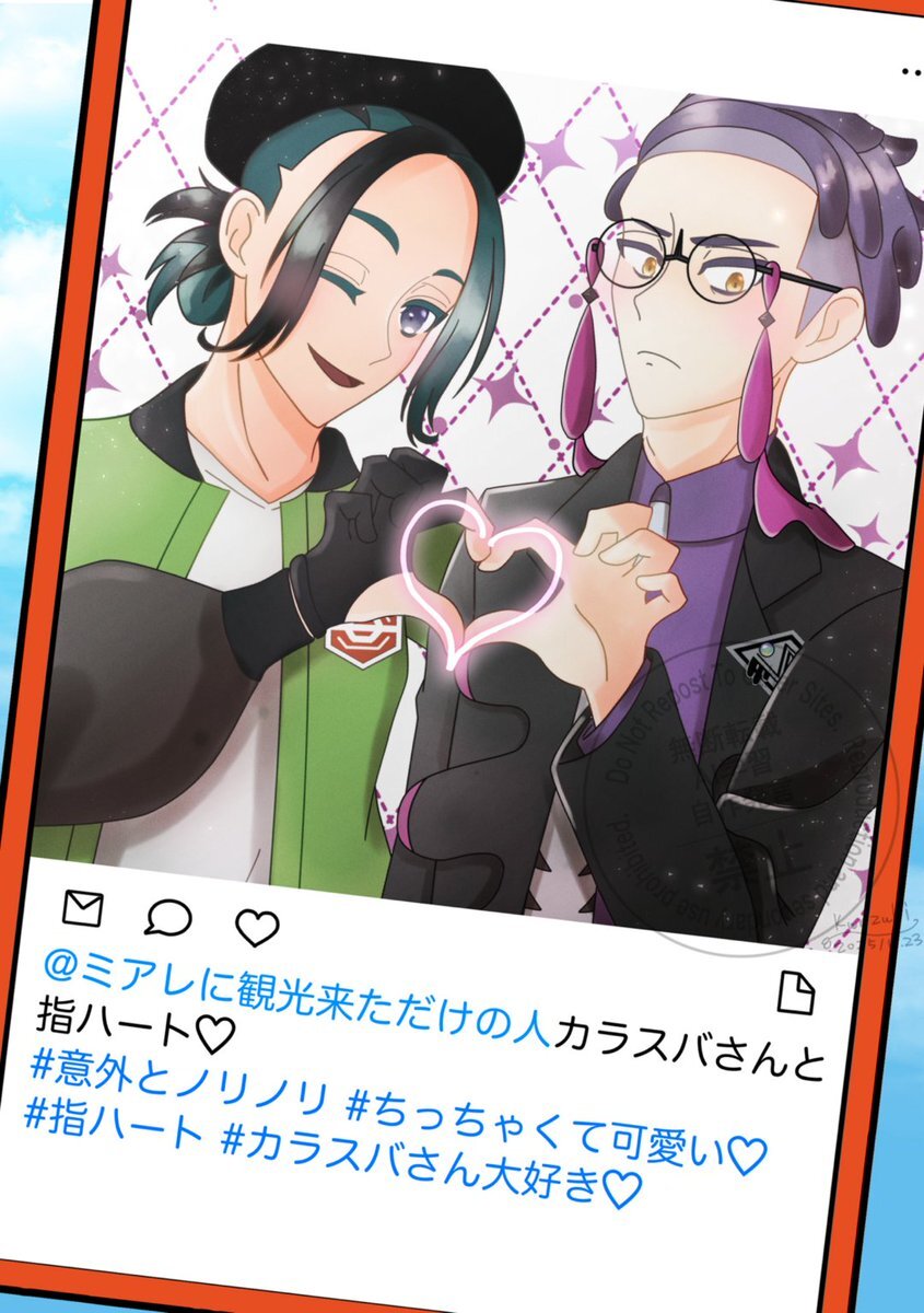 キョカラSNS風イラスト。指ハート❤️ 今更だけど指ハートハマってる🫰 #ポケモン#キョカラ #キョカラ #SNS風 #BL sketch.pixiv.net/items/88297141… pic.x.com/Dcn8jAADg7
