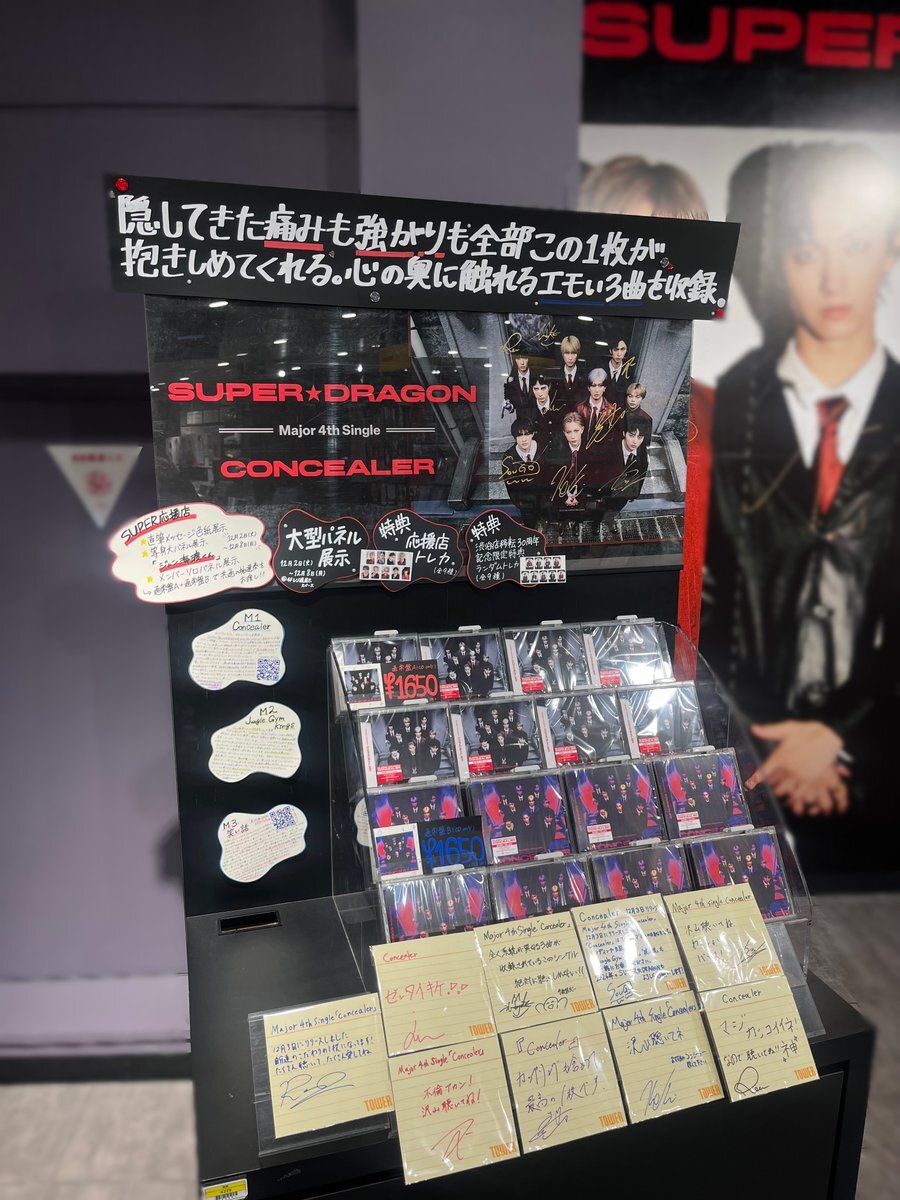 【#SUPERDRAGON】 #しぶやスタダ / SUPER★DRAGON Major 4th single 「 #concealer 」4Fにて大きく展開中♥️💫 #SD_concealer \ 🔴特典⚫️ 応援店トレカ(全9種) or 渋谷店限定トレカ(全9種) トレカのお渡しまだまだございます👌🏻 #タワ渋 では特大パネルとご訪店時のサインを掲出して #BLUE pic.x.com/NVqqu1fbJ9