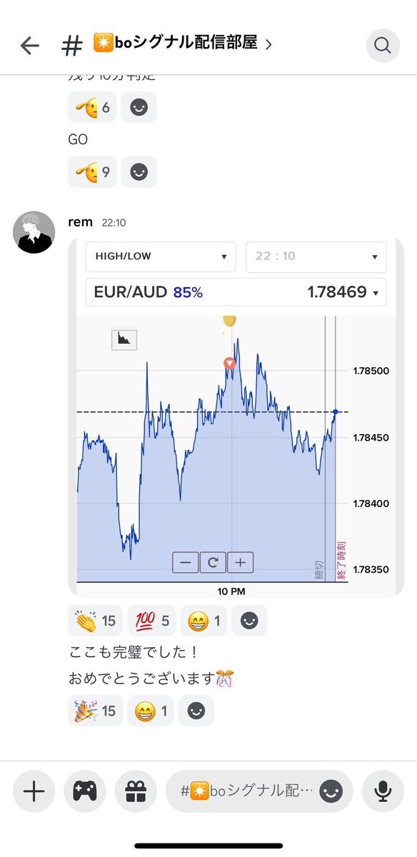 BOシグナル無料配信 本日はしっかり一本取れてます🔥 バイナリーオプションで 月で少しでも勝ちたい方!! 完全無料で参加できますので是非☺️ #バイナリーオプション #バイナリー配信 #バイナリー無料配信 #BO配信 #BO無料配信 #バイナリー裁量 #バイナリー初心者 #FX自動売買 #FX初心者 pic.x.com/IVTAA8xPZ9