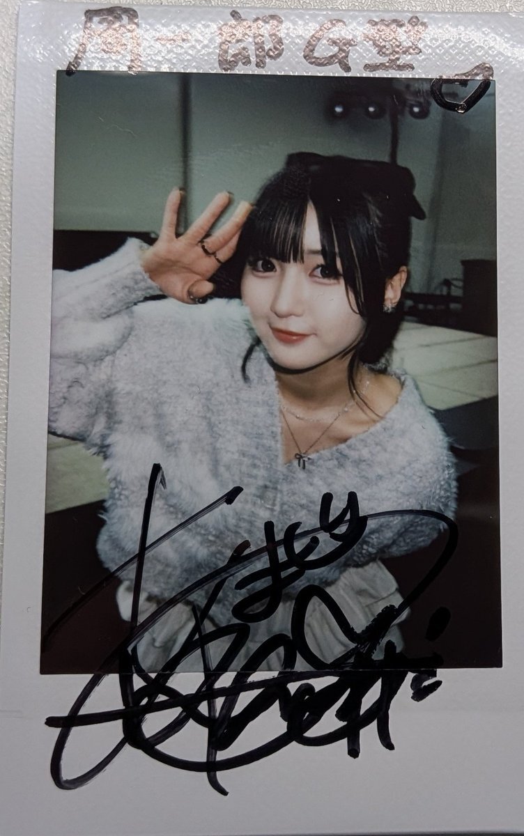 12/20 BRODY コラボイベント 瑠花ちゃんのサインを見て思い付いた宛名 しかし口頭だったので上手く伝わらず おとこが漢字に・・・「にしお」でなく「西オトコ」です しかし私服可愛かったなぁ #東恩納瑠花 #BRODY #リンプラ pic.x.com/vl0LgNJbmd