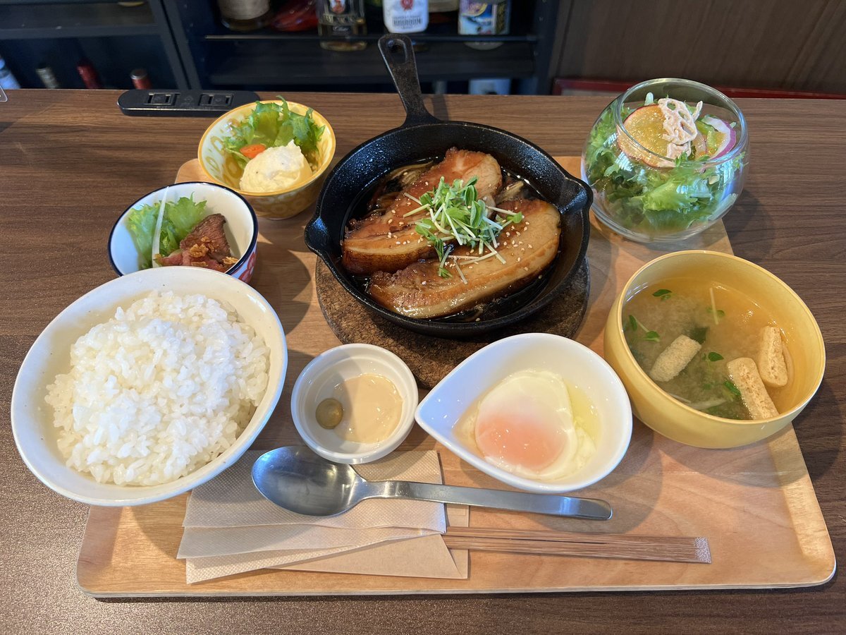 本日のランチは、Cafe&Bar47で本日限定、幻の角煮定食&ミニカタラーナです🤗凄く柔らかい角煮で美味しかったです🤞 #今日も1日たのしいな #ガールズqb #cafe&bar47 pic.x.com/Kocob4nUvP