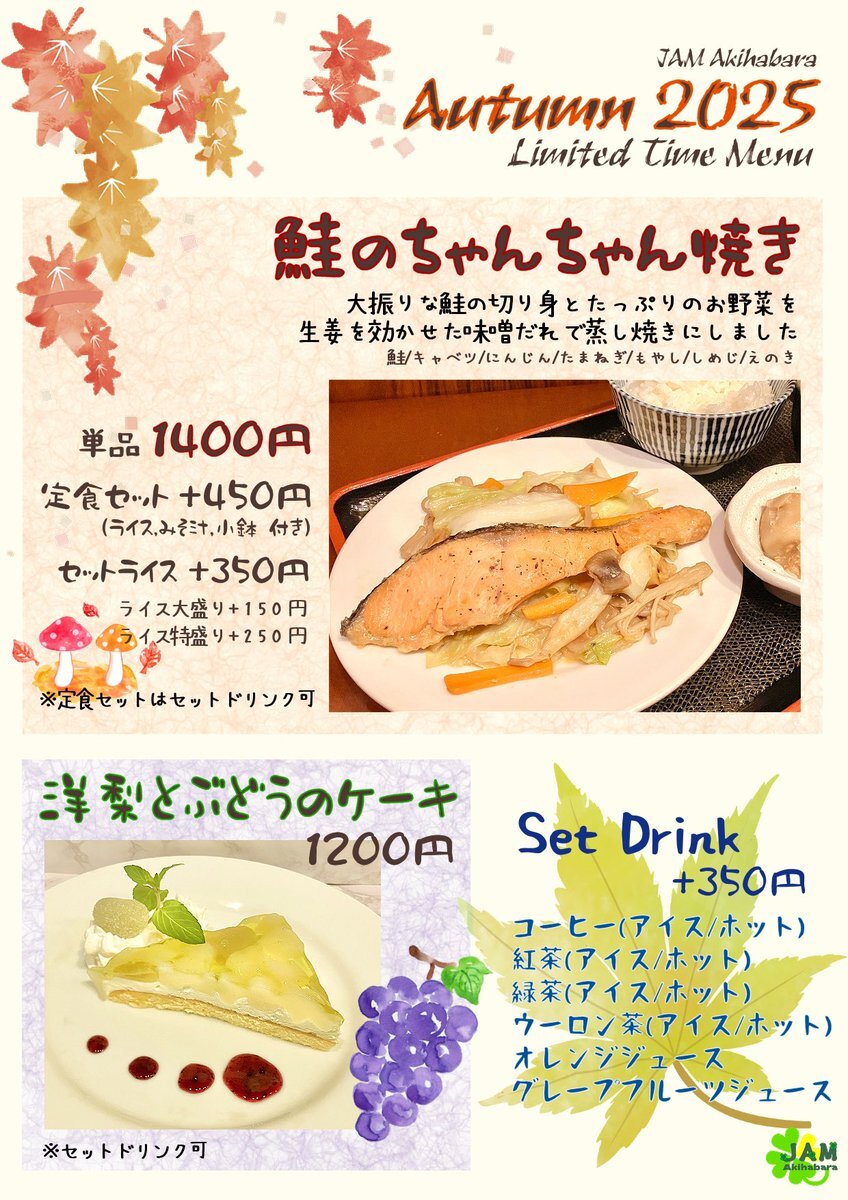 ご一緒に【鮭のちゃんちゃん焼き】はいかがですか🐟 ただいまお席すぐご案内できます✨ ご帰宅お待ちしております🍀 #アキバのお店 #cafe #maid #JAMったー pic.x.com/CApBN4OjRc x.com/jam_akihabara/…