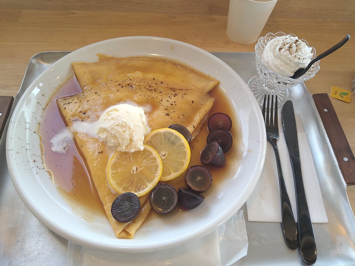 久々に歩いてみようと思ってCafeに行ってみた。なんかクレープって皿に盛ると豪華!紅茶も美味しかった。昔は紅茶にお砂糖ないと飲めなかったのに、今は香りが大事。#クレープ #Cafe pic.x.com/zhz83Xk3UB
