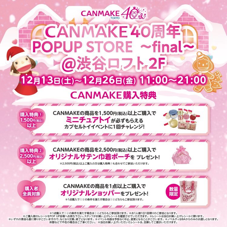 12/26まで渋谷ロフトで開催中✨ CANMAKE 40周年 POPUP STORE ~final~ 40周年おめでとうございます、大変お世話になっております🫶🏻 先行発売商品やオススメから定番まで勢揃いのポップアップイベントなので学生の方も節約美容家の方も損なし👌 #コスメ垢さんと繋がりたい #CANMAKE pic.x.com/DguU9caJkS