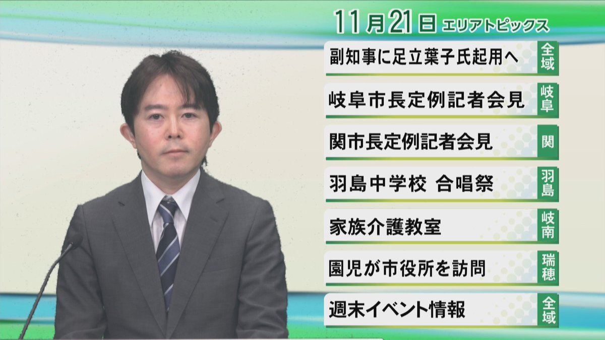 11月21日(金)エリアトピックス 内容は...📷 ①副知事に #足立葉子 氏起用へ ②#岐阜市 長定例会見 ③#関市長 定例会見 ④#羽島中学校 合唱祭 ⑤「健康は“足元”から」 ⑥園児が #瑞穂市 役所訪問 ⑦週末イベント情報 ▼WEB配信はコチラ ccnca.tv/AreaTopics #ケーブルテレビ #CCN #シーシーエヌ pic.x.com/qH9ILcA2kE