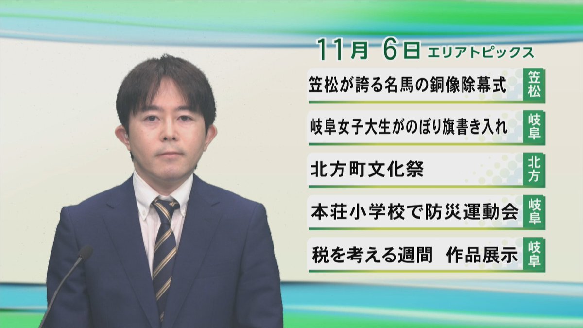 11月6日(木)#エリアトピックス 内容は...📷 ①#笠松町 笠松が誇る名馬の銅像除幕式 ②#岐阜女子大生 がのぼり旗書き入れ ③#北方町文化祭#本荘小学校 で防災運動会 ⑤#税を考える週間 税の作品展示 ▼WEB配信 ccnca.tv/AreaTopics #CCN #岐阜市 #ラブミーチャン #笠松競馬 pic.x.com/jkqBXUS6fD