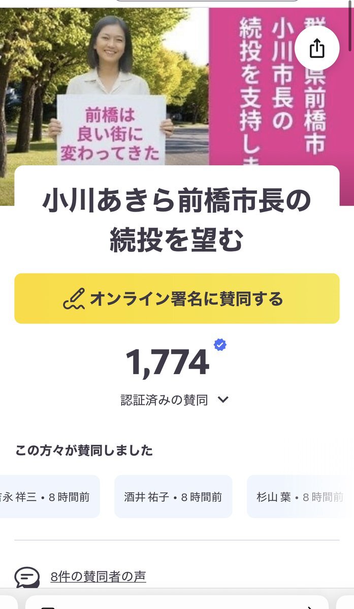反省して正直に民意を問うのが先では。 支援者が勝手にやってるんだろうけど、数人/日から、今日だけで113人とか不自然過ぎ。 一つだけ、まだまだ全然前橋市有権者の1パーセントにもならんす。 #前橋市長 #change #チェンジ・ドット・オーグ x.com/YKiwam/status/…