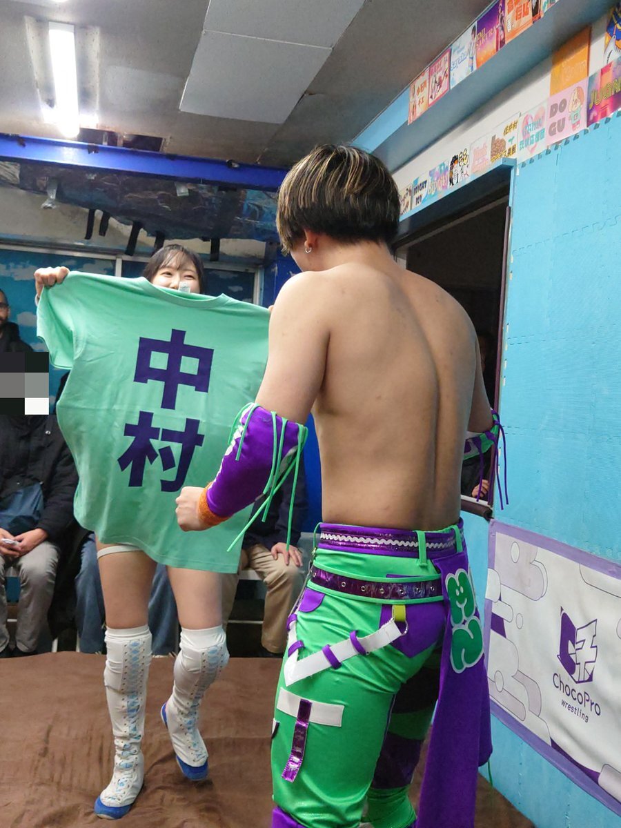 【12.14チョコプロ494】 ついに中村宗達選手に専用Tシャツが贈呈 #ChocoPro #GanPro pic.x.com/6zHP3nZQiI