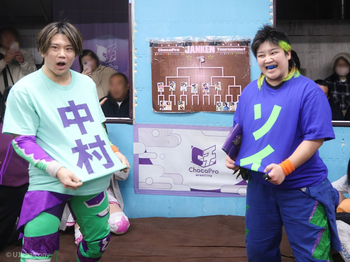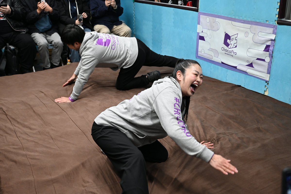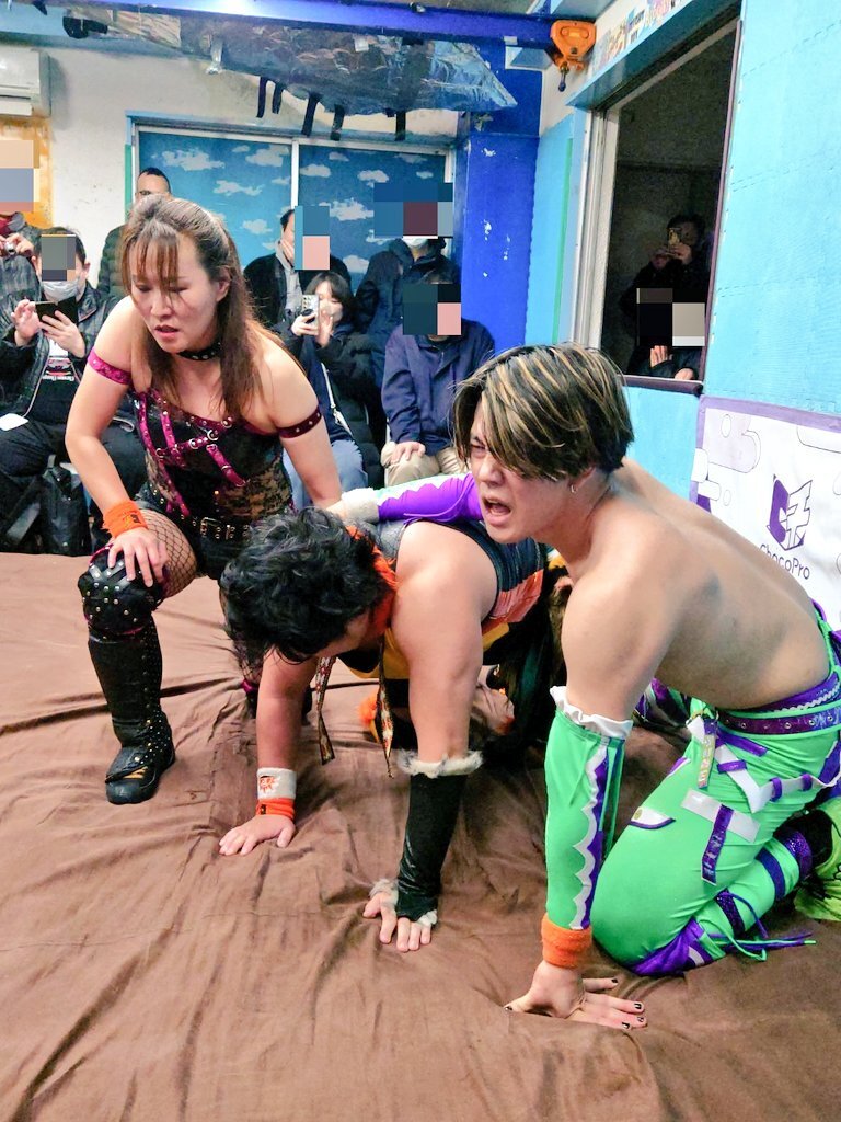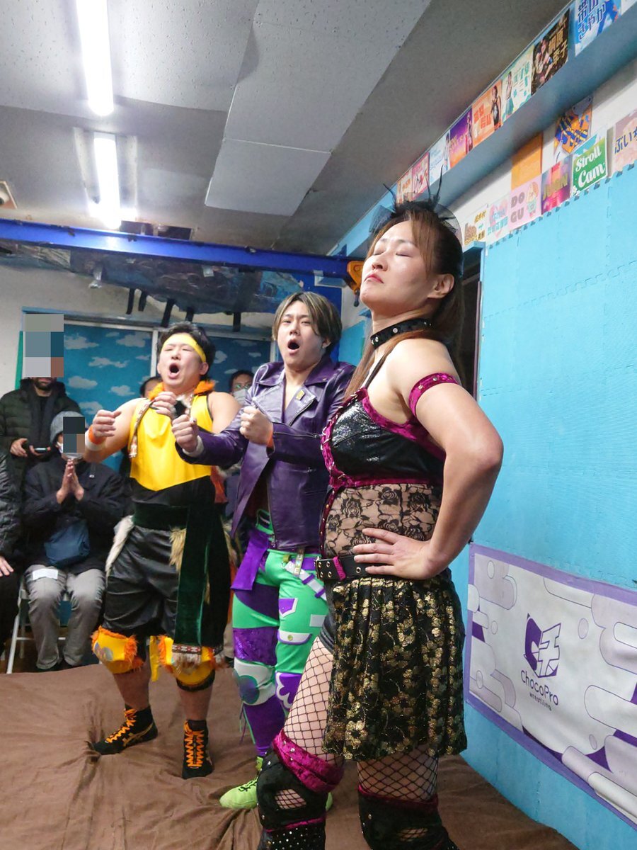 【12.14チョコプロ494】 番長・桐原季子選手の号令に気合いが入る子分(中村宗達&鈴木心)たち #ChocoPro pic.x.com/OGJeFwxtHA