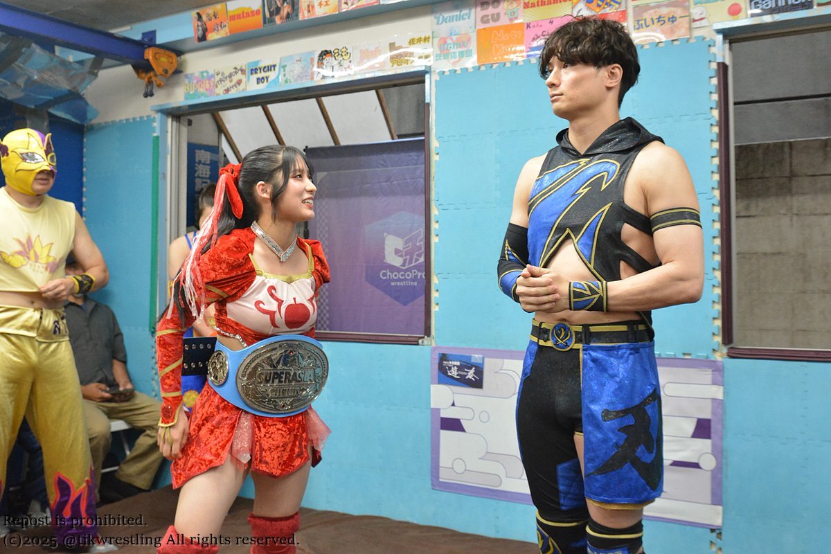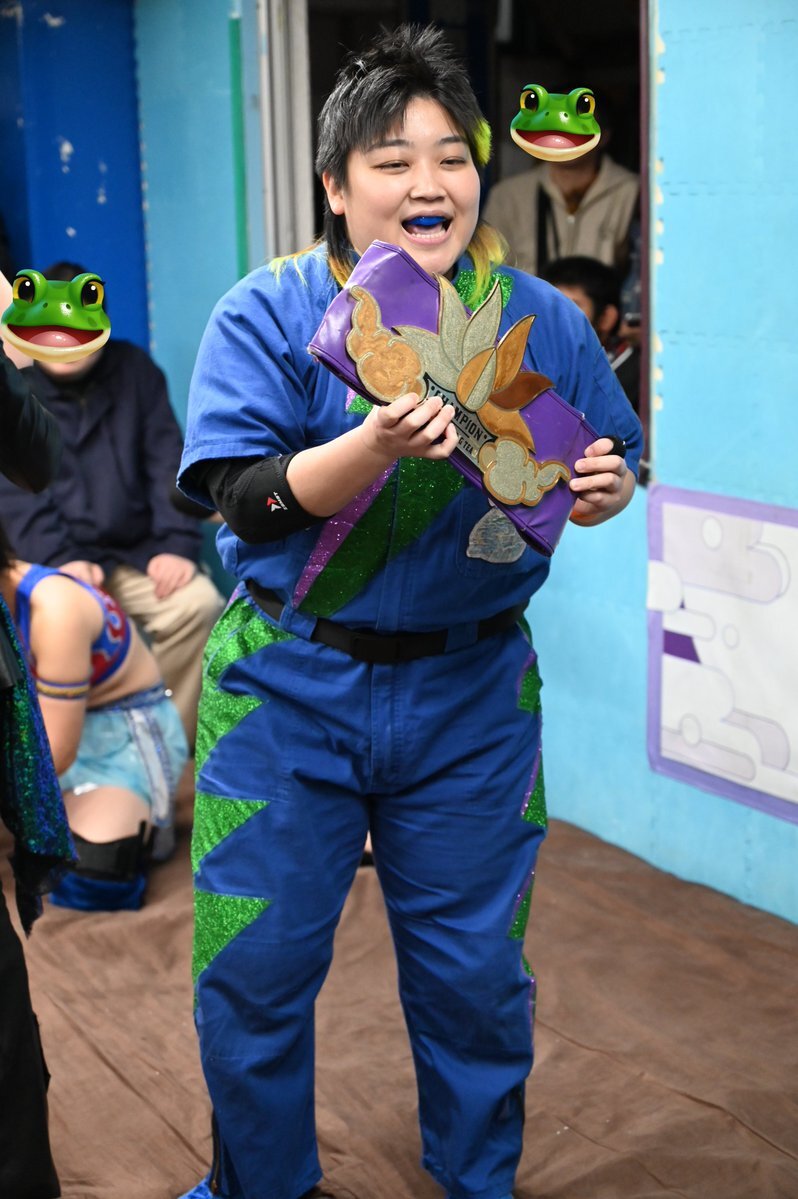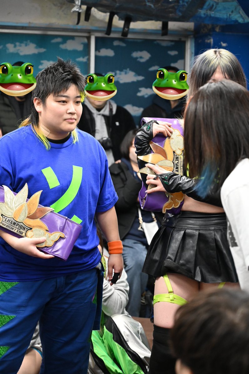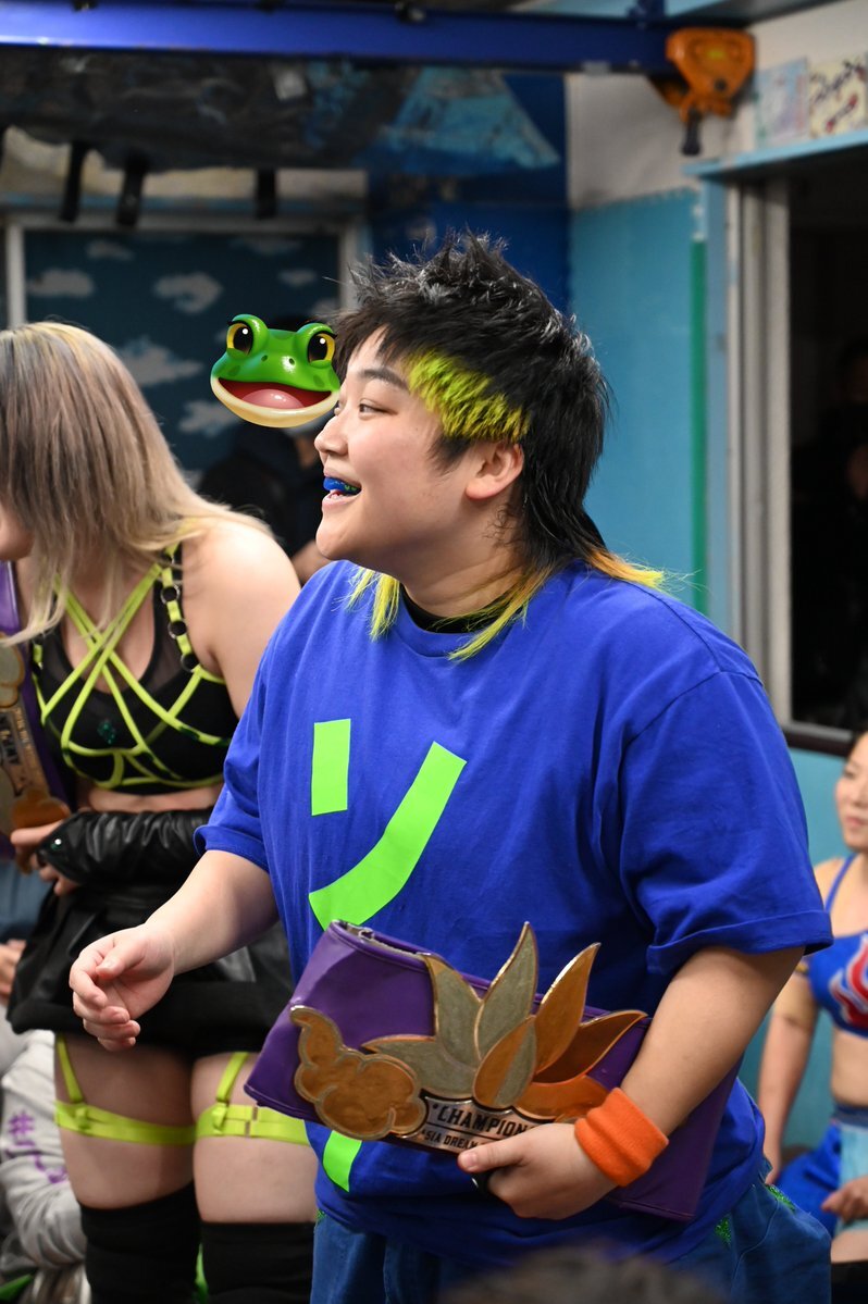 【12.14チョコプロ494】 #ミヤソイ がチャンピオンとして市ヶ谷凱旋 ※谷綿ヒヨリ選手は頬を膨らませる #ChocoPro #アジアドリームミヤソイ #Evo_pw pic.x.com/pcniEZIQCa