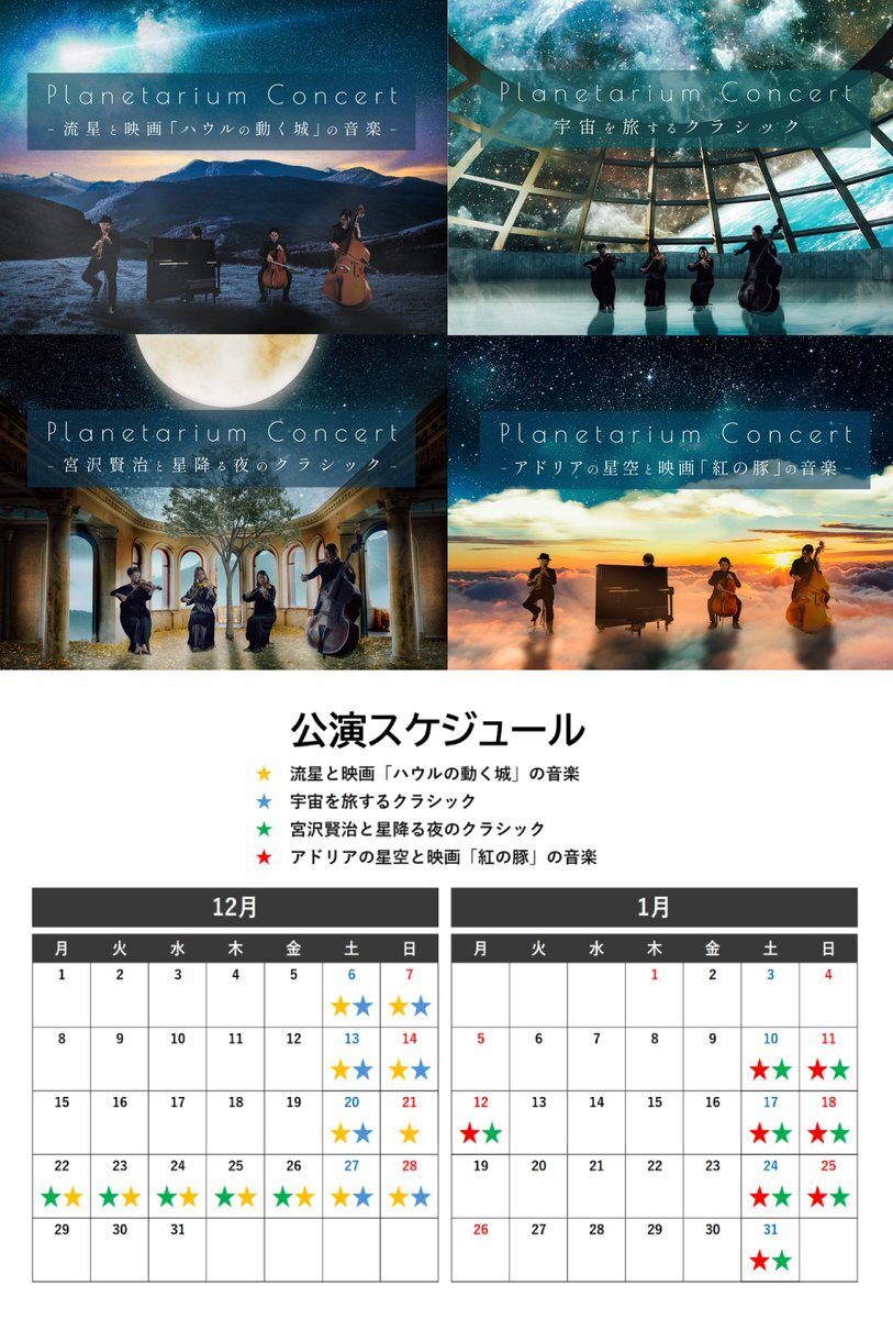 😀#プラネタリウムコンサート✨ \ 人気公演の再上演🎉 宇宙を旅するような #プラネタリウム ならではの映像演出と共に、生演奏による名曲たちをお届けします♪ 🪐12月の演目----------- Planetarium Concert -宇宙を旅するクラシック- ------🚀 #クラシック #classic x.com/ticket_board/s…