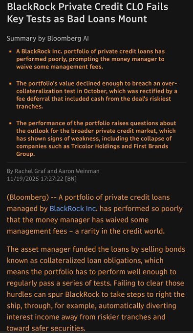 ブラックロックの #CLO が最初に目を覚ました時 このブラックロックのCLOは、表面が剥がれ落ち、その下に隠されていたものが見えてくる瞬間の一つです。安全で、高格付けのトランシェ、分散されたローン、安定した収入があるはずの取引が、コアテストに不合格になったのは x.com/onechancefreed…