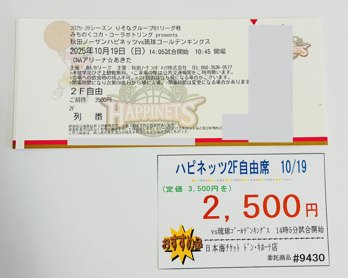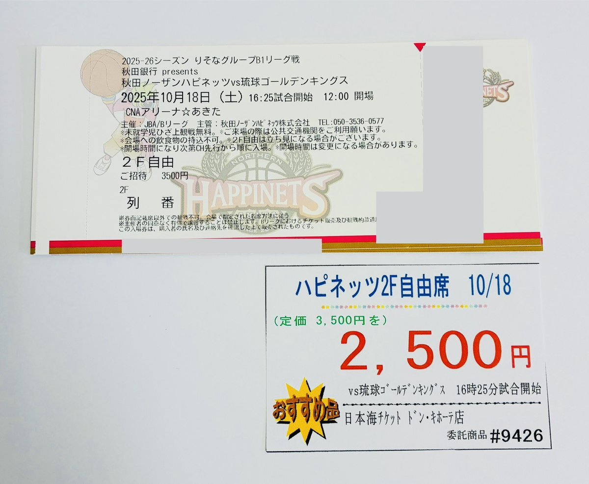 ドンキ店です✨ #ハピネッツ 2F自由席チケット入荷!🏀 10/18(土)16:25開始 定価3,500円➡2,500円販売/4枚 10/19(日)14:05開始 定価3,500円➡2,500円販売/4枚 お問合せ・ご来店お待ちしております! #琉球ゴールデンキングス #CNAアリーナ #バスケ #秋田 pic.x.com/XH4aYHri6t