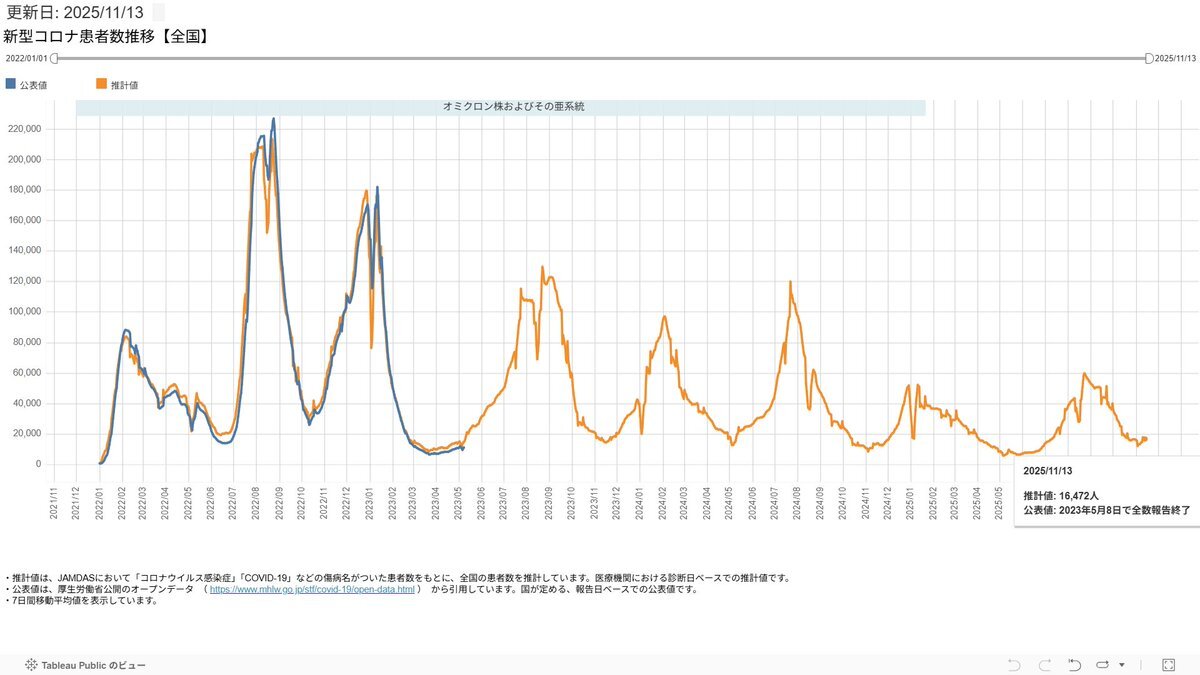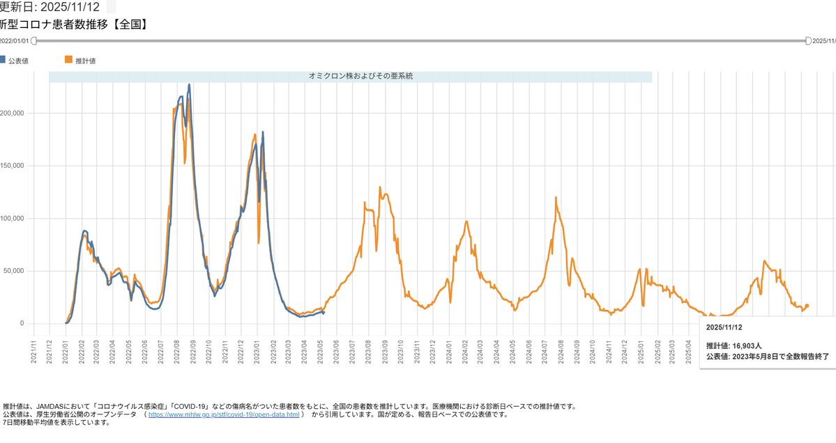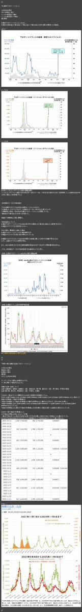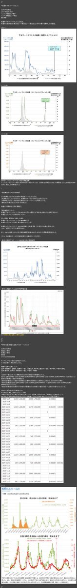 #COVID19 新型コロナ 慢性化の懸念 2025/04/20 2025/05/31加筆 年度替わり以降、下水サーベイを終了する自治体がちらほら現れているので俺的にはちょっと心配している 更に政府は4月から定点報告機関を大幅削減(約5千→約3千) その結果、本当の感染者数の更なる増加と慢性化への懸念が強まると思う pic.x.com/yMkEEUK5kl