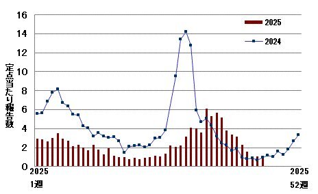 大阪市のCOVID19発生状況 (定点当たり報告数) 10/27~11/02 1.07 #新型コロナウイルス #COVID19 x.com/FrogStonecold/…