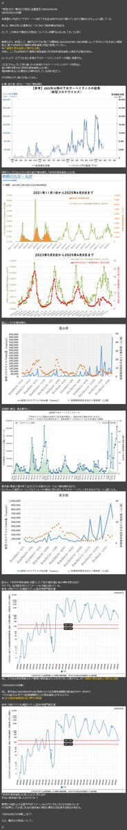 #COVID19 新型コロナ 慢性化の懸念 2025/04/20 2025/05/31加筆 年度替わり以降、下水サーベイを終了する自治体がちらほら現れているので俺的にはちょっと心配している 更に政府は4月から定点報告機関を大幅削減(約5千→約3千) その結果、本当の感染者数の更なる増加と慢性化への懸念が強まると思う pic.x.com/sFxLHH5ByM