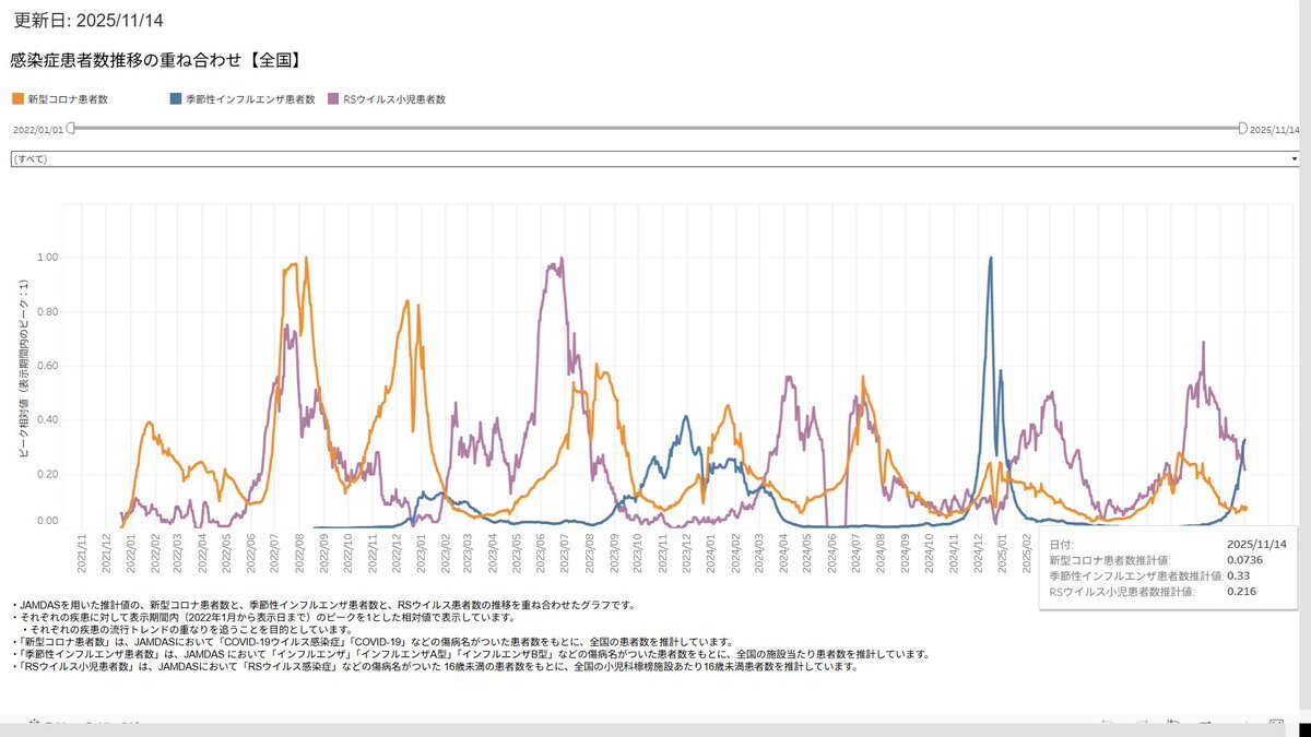 #新型コロナ #covid19 #季節性インフルエンザ 2025年11月14日 Moderna製薬発表 リアルタイム流行疫学情報 ・新型コロナウイルス ・RSウイルス ・流行性インフルエンザ ⇒急拡大 moderna-epi-report.jp pic.x.com/X3POgp3OPd