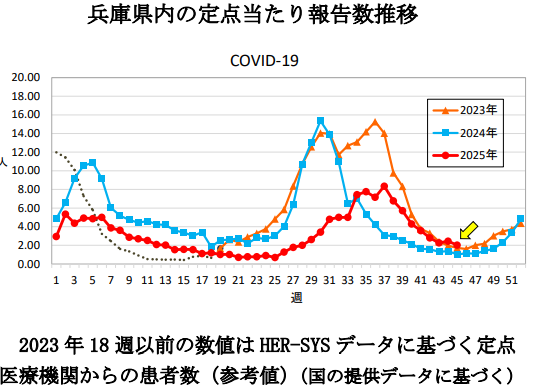 大阪市のCOVID19発生状況 (定点当たり報告数) 11/03~11/09 1.16 #新型コロナウイルス #COVID19 pic.x.com/fHNQOvbCxh x.com/FrogStonecold/…