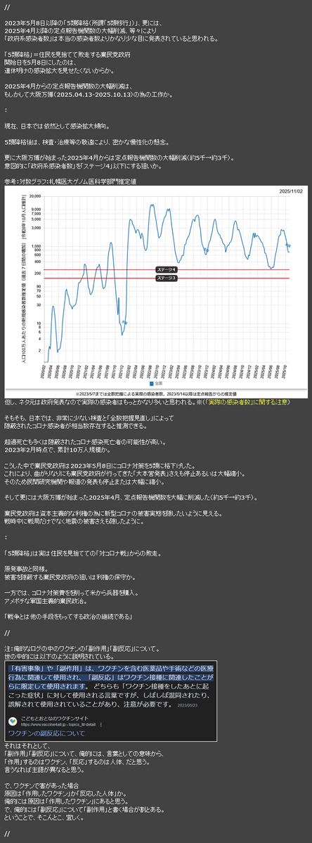 #COVID19 新型コロナ関連報道 *外国向け政府広報で逆の印象操作か 政府や行政がコロナ対策を縮小する中、逆の印象を与えると思われる記事が出されていた *政府は2025年4月から報告機関を大幅削減=約5千→約3千 約1か月後「1医療機関あたり感染者数」が半分以下に? もしかして、大阪万博の為の工作? pic.x.com/RSgDs3uaFI