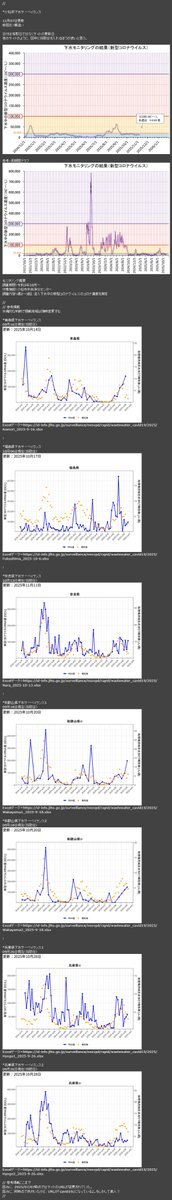 #COVID19 新型コロナ 下水サーベイ *更新状況と増減 基本的に日付は採取日・週一 *前回比:U増加 D減少 E横這い X不検出 N更新 札幌市11/09D インフル A=U B=X 相模川11/07U グラフ11/04N 山梨県11/11DN 岩手県11/05U 小松市11/04E 参考=青森09/16 福島10/06 奈良10/13 和歌山09/18 兵庫09/26 pic.x.com/v1XVHNJx3j