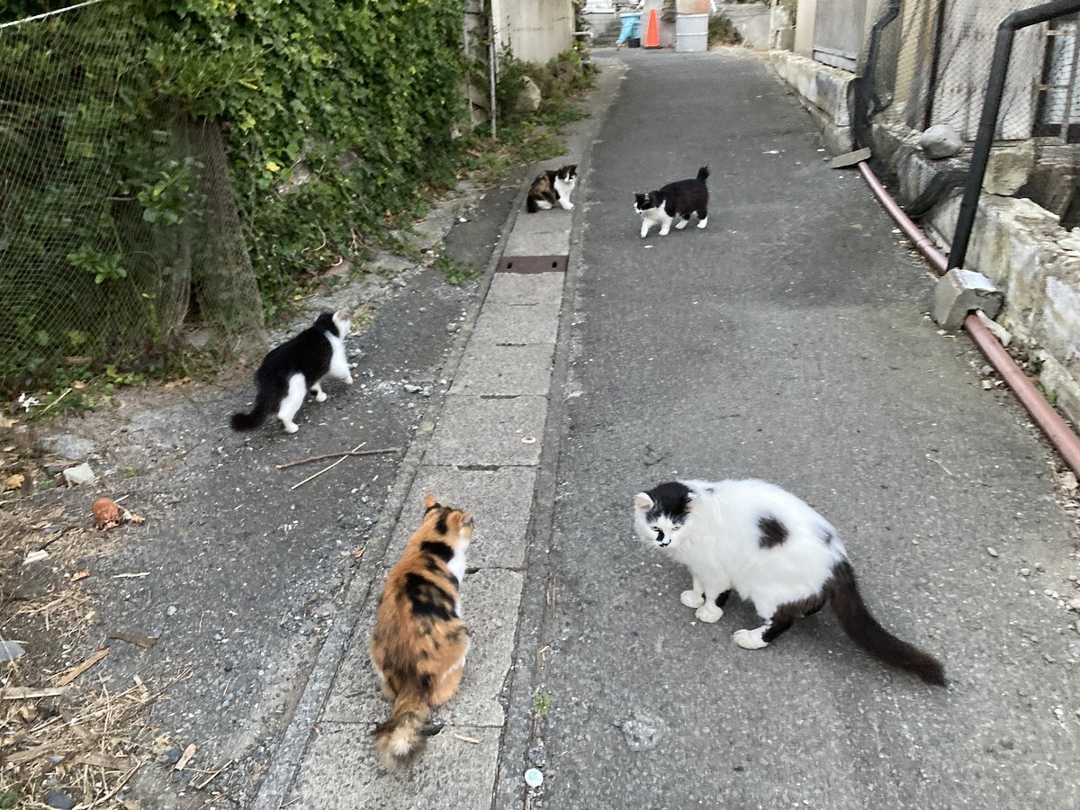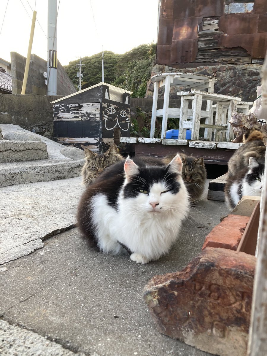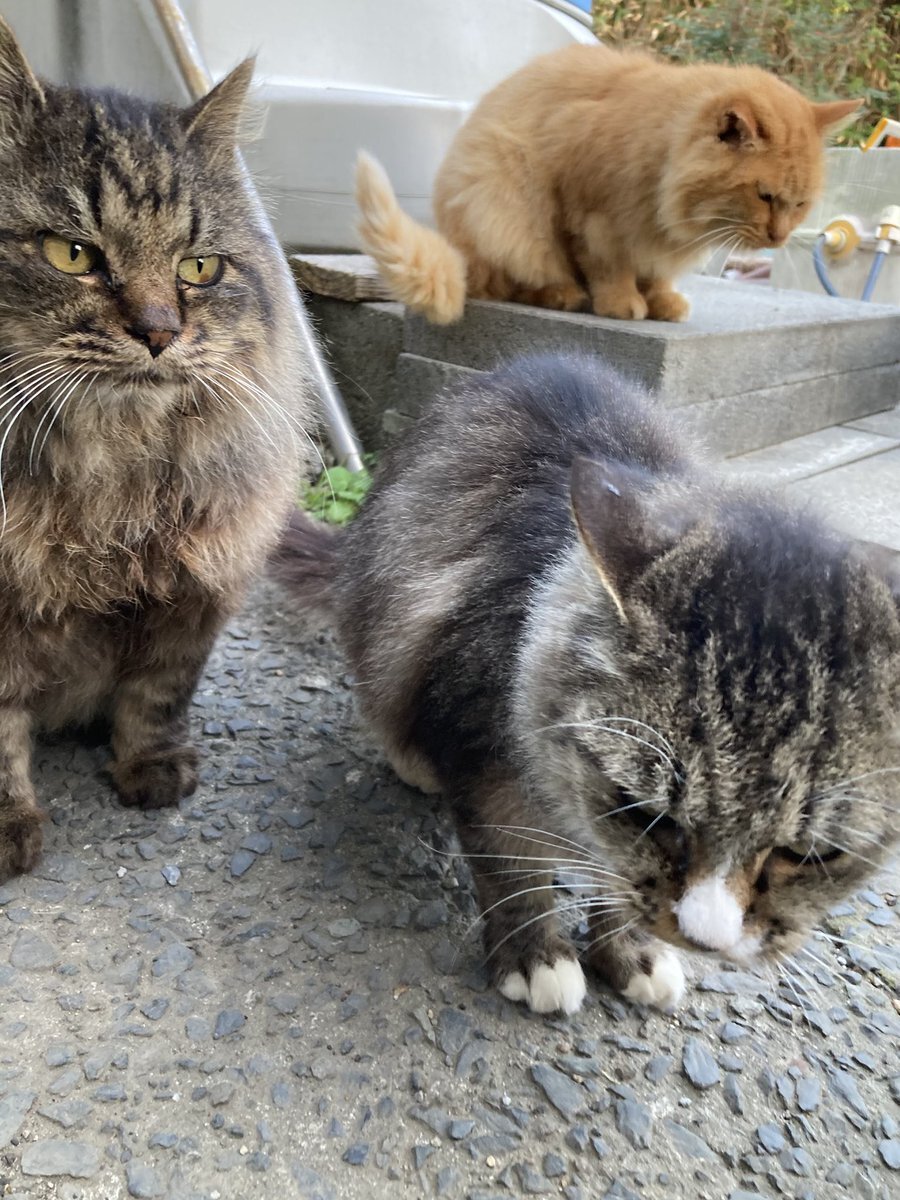 夕方の様子 いつもの顔ぶれに、おかかとテトも来てくれました😸 #田代島 #ねこ #tashirojima #catisland #catlover #CatsOnX #CatsOfX #cat #cats pic.x.com/pbfPpBBXMH