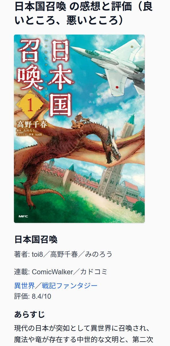 日本国召喚 日本列島ごと異世界に召喚され外交と戦争に挑むが… 詳細なあらすじや良い点・悪い点をチェック✨ #日本国召喚 #ComicWalker #10巻以上の漫画 mangayoshiashi.com/manga/c6f70d3f… pic.x.com/IwY7yAYAJ2