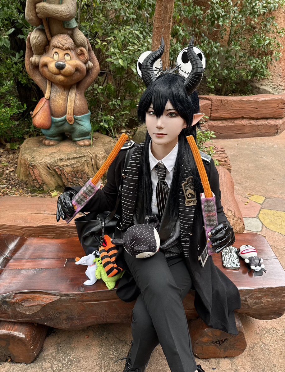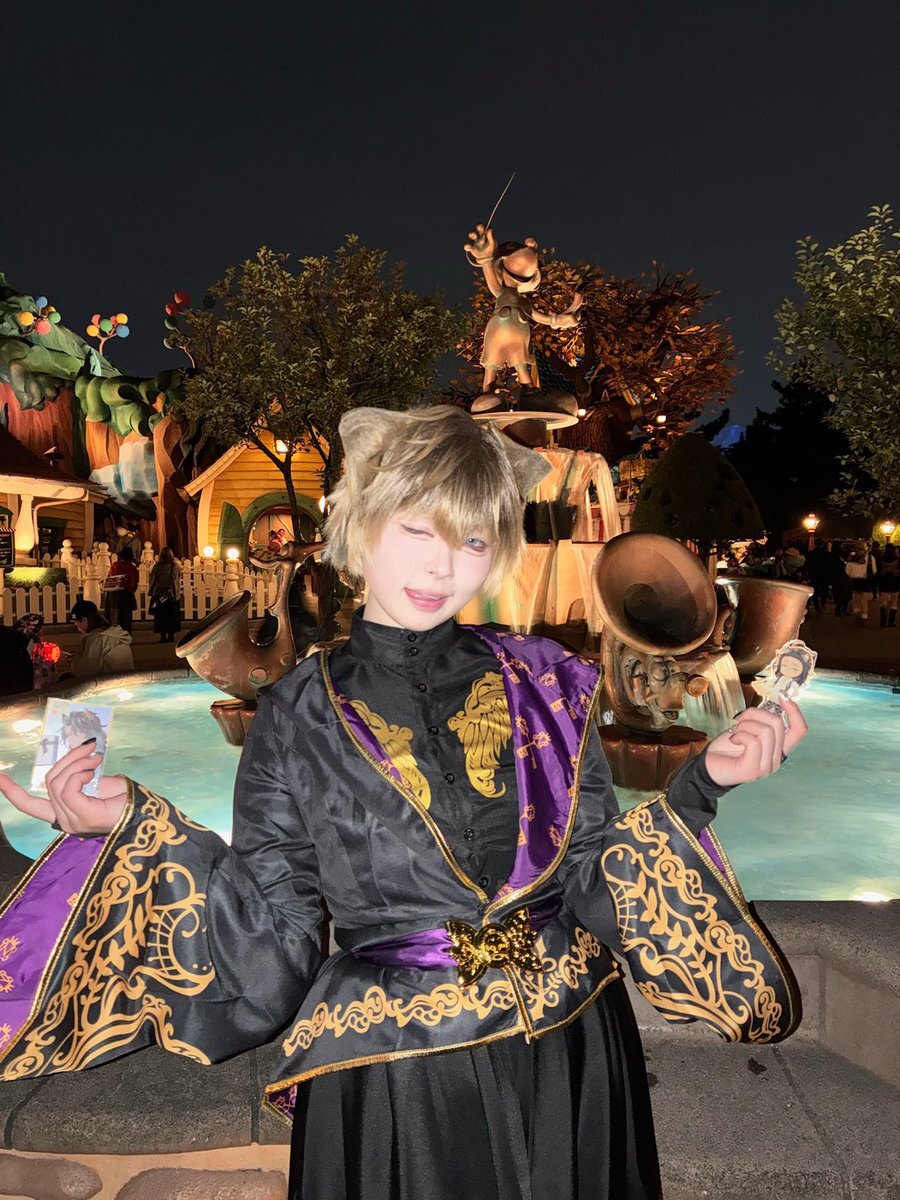 twst cos この後膝をチュロスの粉でいっぱいにしたし、2本食べて口パッサパサになった #Dハロ仮装2025 #Dハロ仮装 #Dハロ仮装ツイステ #Dハロツイステ pic.x.com/W59J4h7CJe