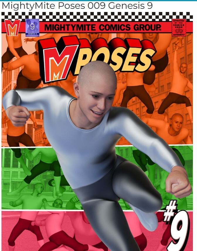 MightyMite氏のポーズはアメコミ大好きな氏らしいアクションシーンで汎用性のある使えるポーズ集。プロモーション画像がデフォルトG9なのでイマイチ伝わらんがホントに使えるポーズ集なんですっ! #DazStudio #3DCG #Daz3D pic.x.com/lOCnCttUQz