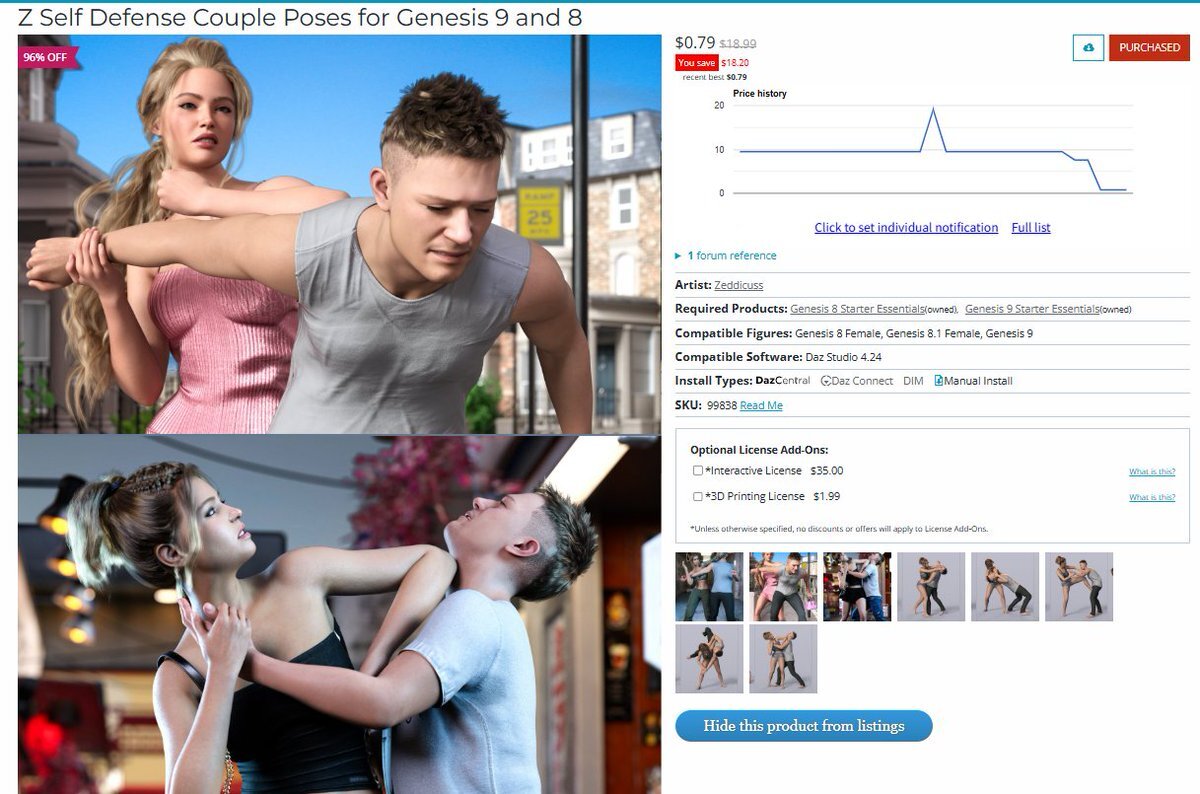 ポーズ30種で$0.79って誤爆?って最初思いましたが入れ替わりで安くなるんですね😅 #Dazstudio daz3d.com/z-self-defense… pic.x.com/Huak4enjV3