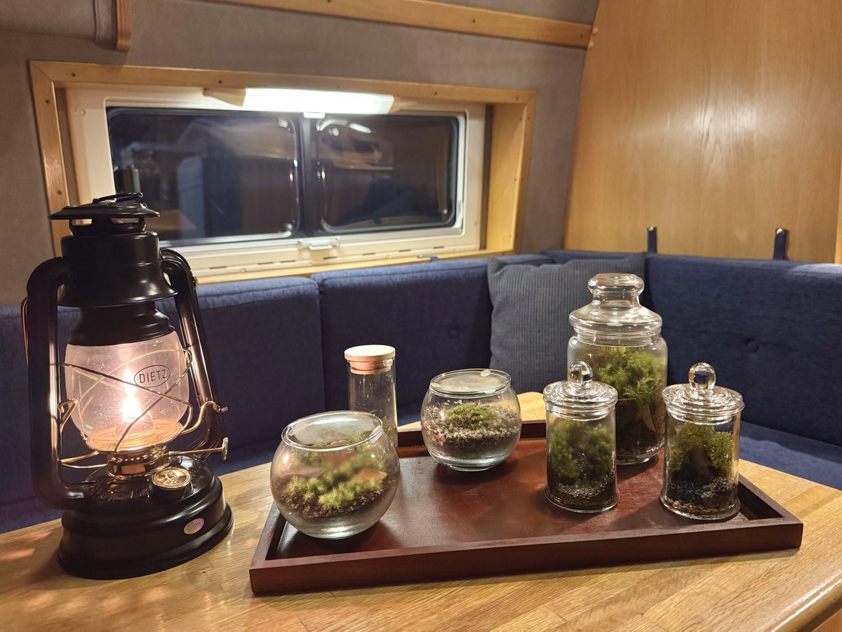 DDの中でゆっくり苔鑑賞☺️ @MossCountry さん、地元にイベント出展されているとの事で行ってきました✨ 先日自分で作ってもみましたが、やはりプロの作品を見てしまうと欲しくなり…😆 #苔テラリウム #中古キャンピングカー #カトーモーター #DD #オイルランタン pic.x.com/yzXzLgoPDB x.com/mosscountry/st…