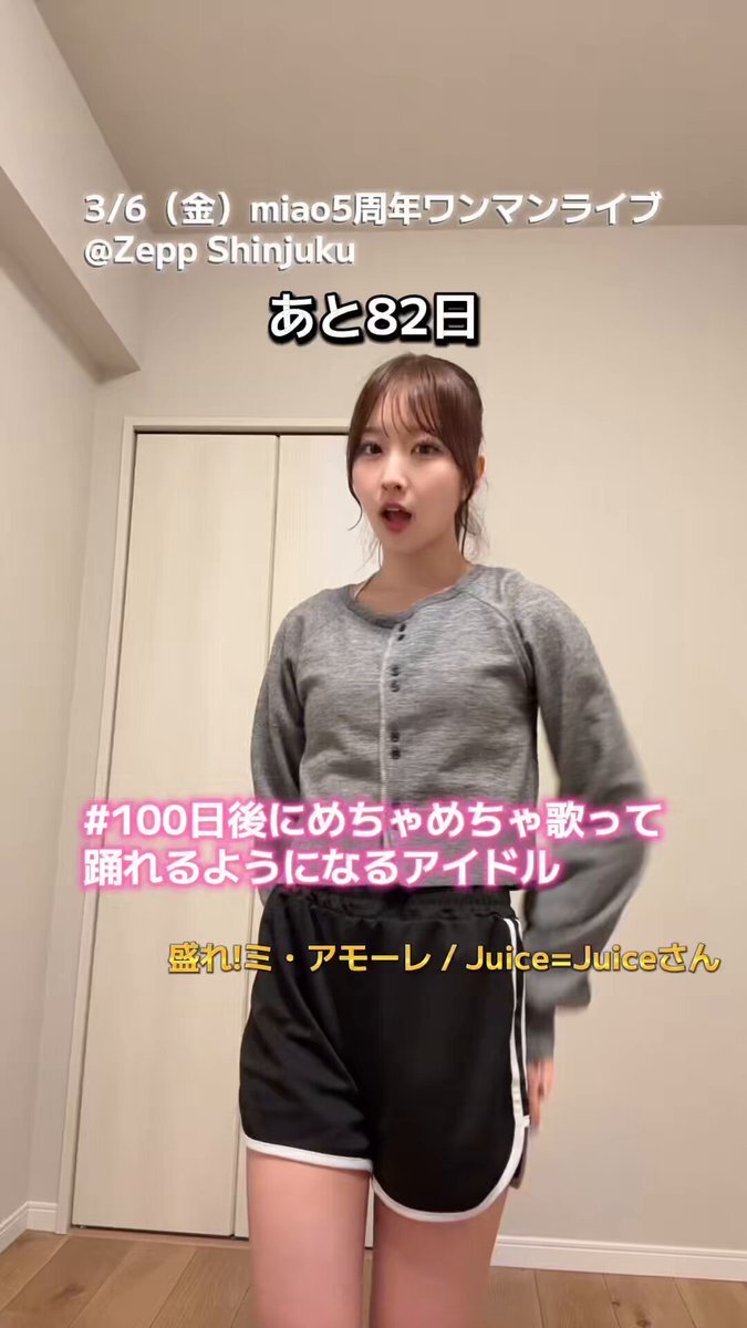 #100日後にめちゃめちゃ歌って踊れるようになるアイドル 50リポストでnextポスト♻️ あと82日‼️‼️‼️ 今日はJuice=Juiceさんの盛れ!ミ・アモーレです💃これ難しい( i _ i )けどこの曲超かっこいいよね🥹頑張って覚えてみたよ!!! リクエストも募集中です✍️ miao 5周年 Zepp