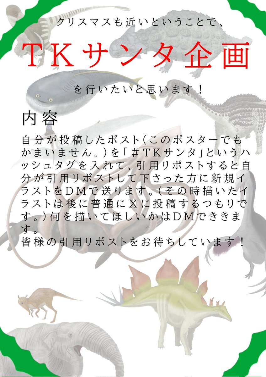 #恐竜 #古生物 #dinosaur #クリスマス #拡散希望 #拡散希望RTお願いします クリスマスも近いということで、TKサンタ企画を行いたいと思います! 詳細は下の通りです。 pic.x.com/0ANuDqCxsX