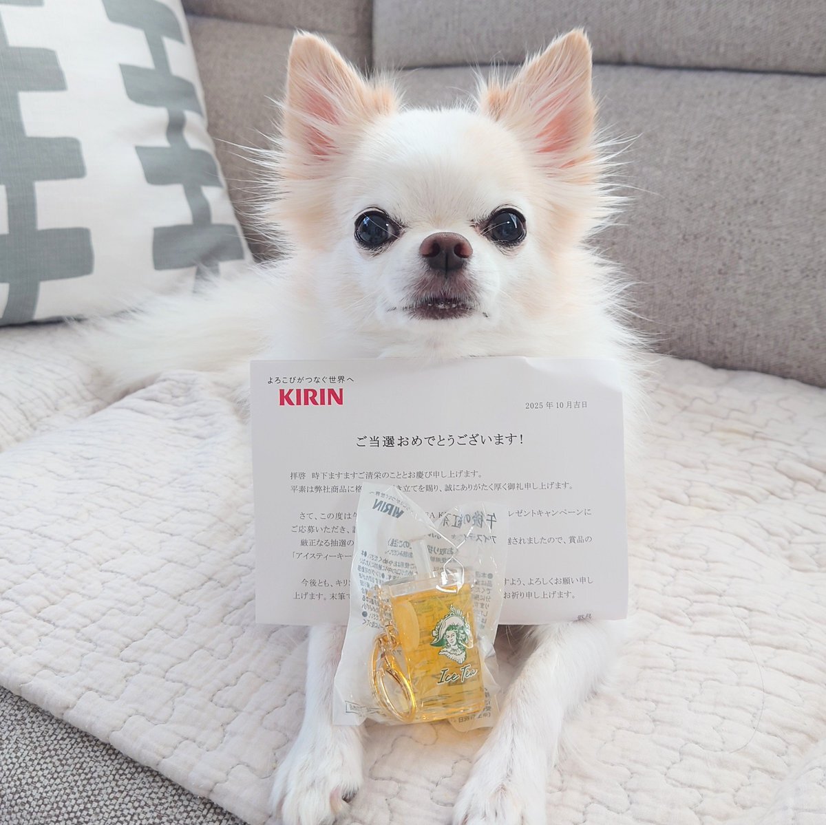 午後の紅茶のキーホルダー当たった! レモンの輪切りと氷が入ってて 細かーい♪ ありがとうございます。 大切にします♪ #KIRIN #午後の紅茶 #チワワ #Chihuahua #犬 #dog pic.x.com/BGOHqBr1Oi