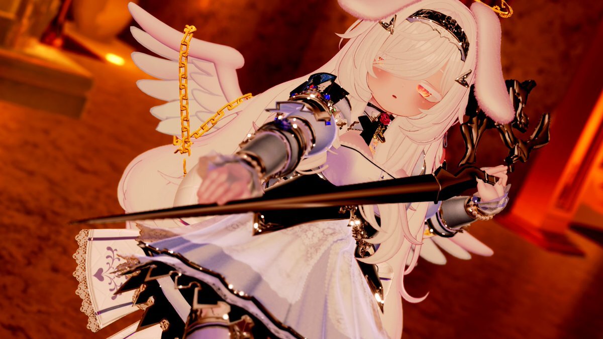 小僧さん(@kozoVRww)の企画でギフトしていただいた服! 対応アバター持ってなかった事件が発生して死ぬ気でルミナに着せました!装飾もギミックもすごかった…… #DecoraNaige) pic.x.com/s9iy98nFeW