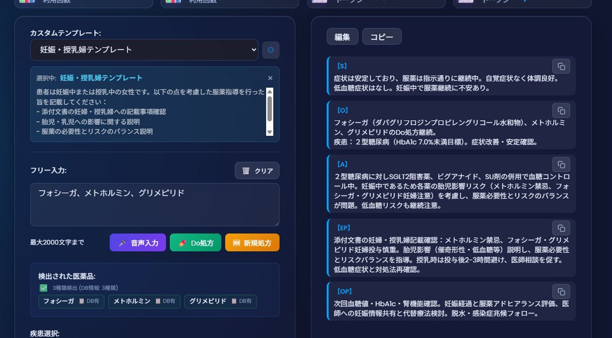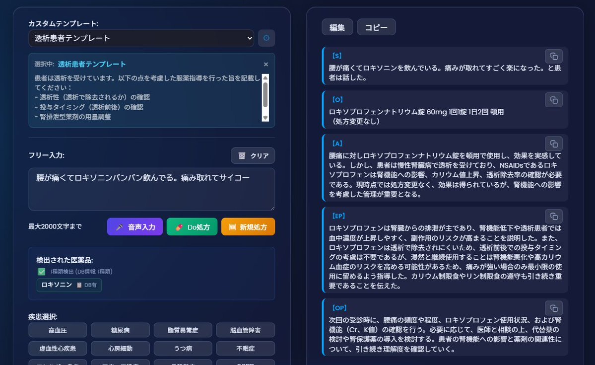 プロンプトテンプレート機能を試しています。簡単に患者種別や特定の背景の人たちに合わせた薬歴を作成できるようになります。(アップデート今晩予定) #deepimpact #薬歴AIディープインパクト #ディープインパクト pic.x.com/A6uIFRggRz
