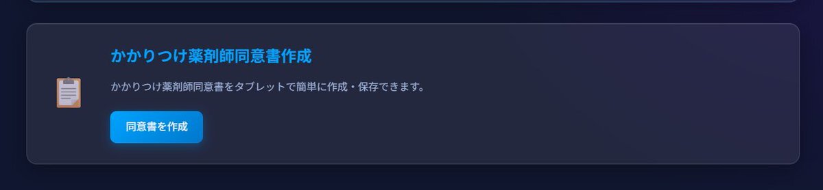ディープインパクトにかかりつけ薬剤師同意書機能を実装したぺる! 無料ユーザーでも使えるぺる。タブレットで試してみてね。 #deepimpact #AI薬歴ディープインパクト pic.x.com/UDiRvbuzZz x.com/yu29ozaki/stat…